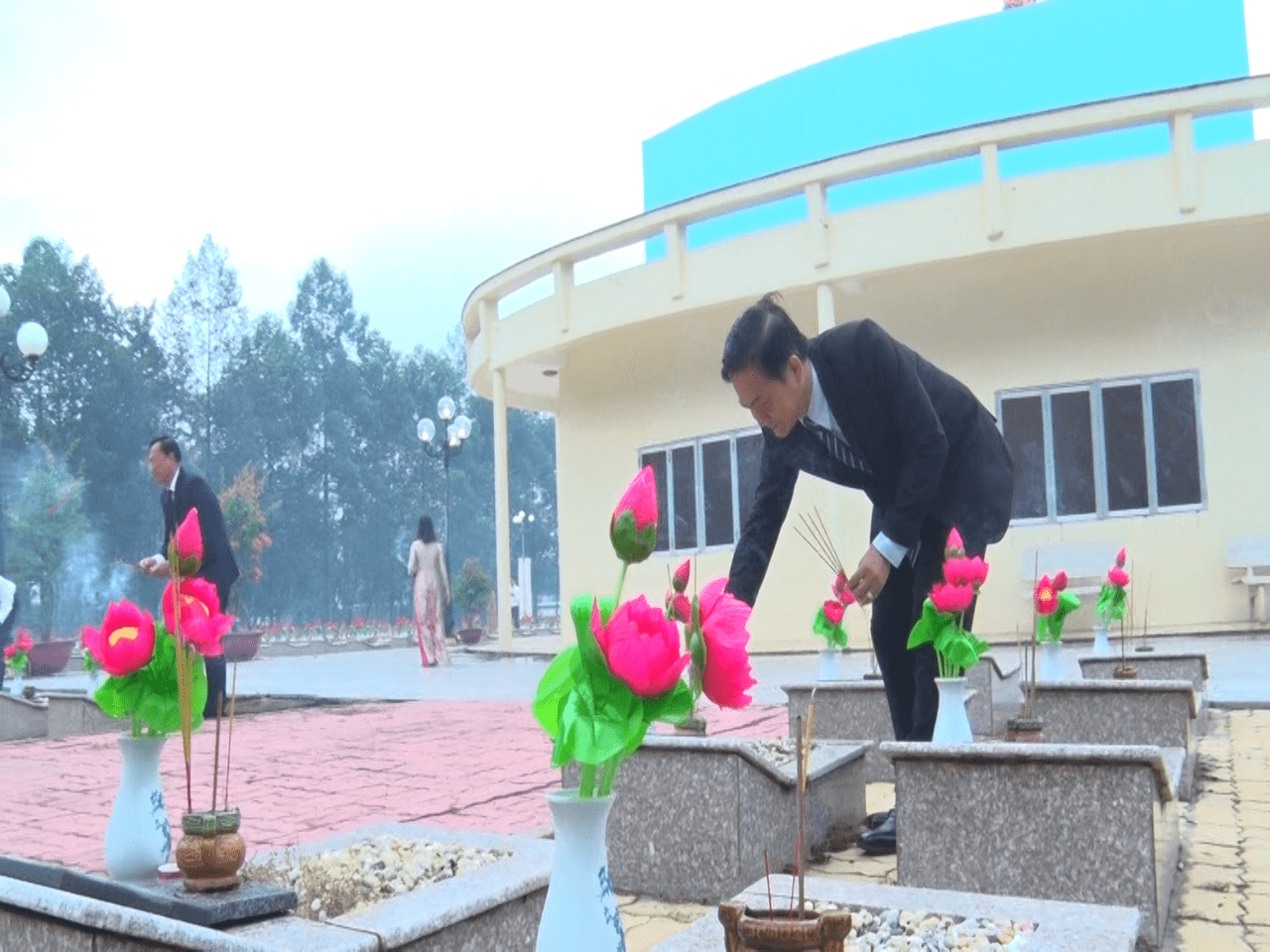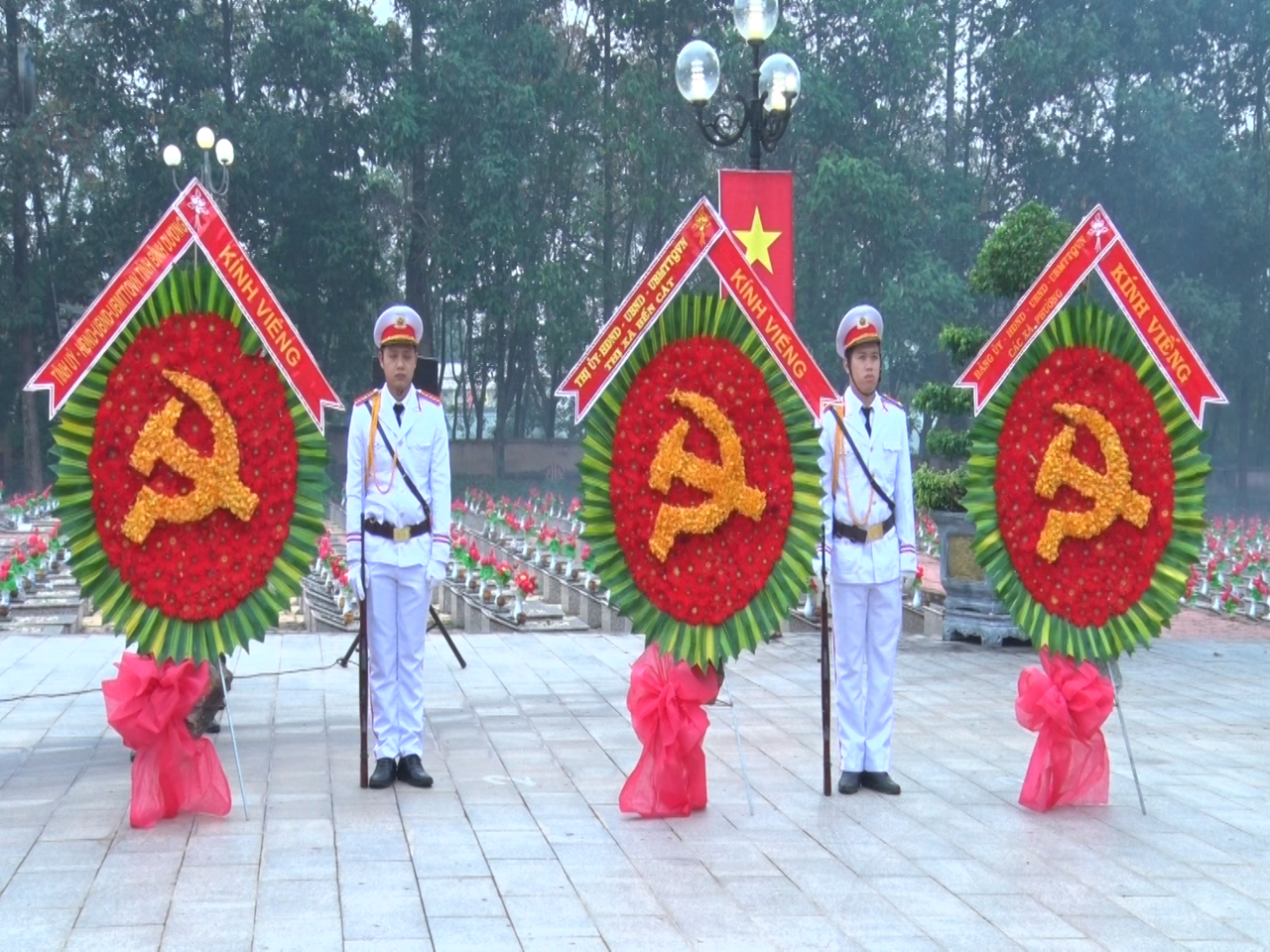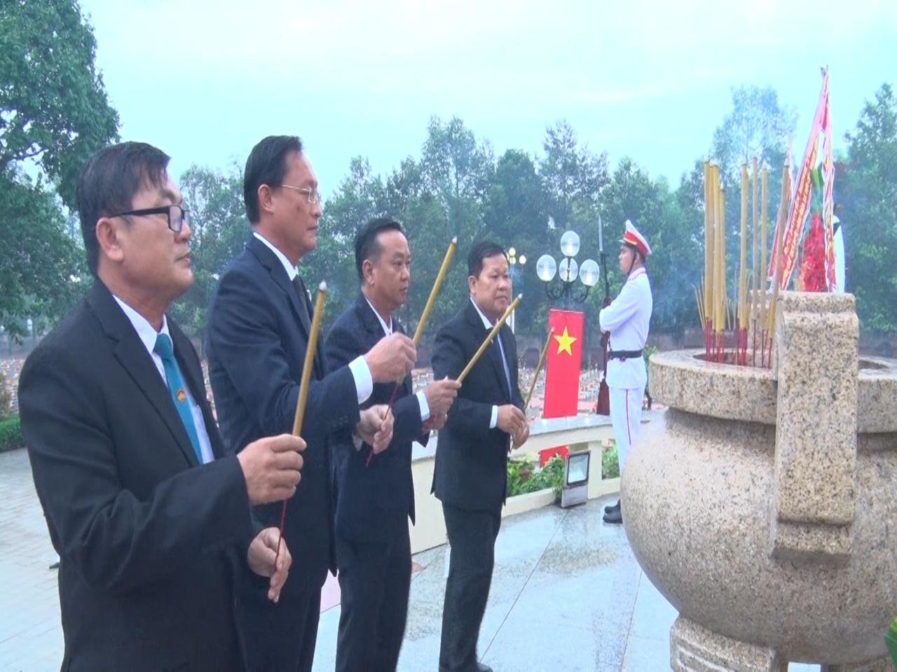Tại lễ viếng, các đồng chí lãnh đạo thành kính dâng hương, dâng hoa lên tượng đài Tổ quốc ghi công, dành một phút mặc niệm tưởng nhớ công lao to lớn của Chủ tịch Hồ Chí Minh kính yêu cùng các anh hùng liệt sĩ, những người con ưu tú của dân tộc đã anh dũng hy sinh vì độc lập, tự do của Tổ quốc, vì cuộc sống bình yên của nhân dân.