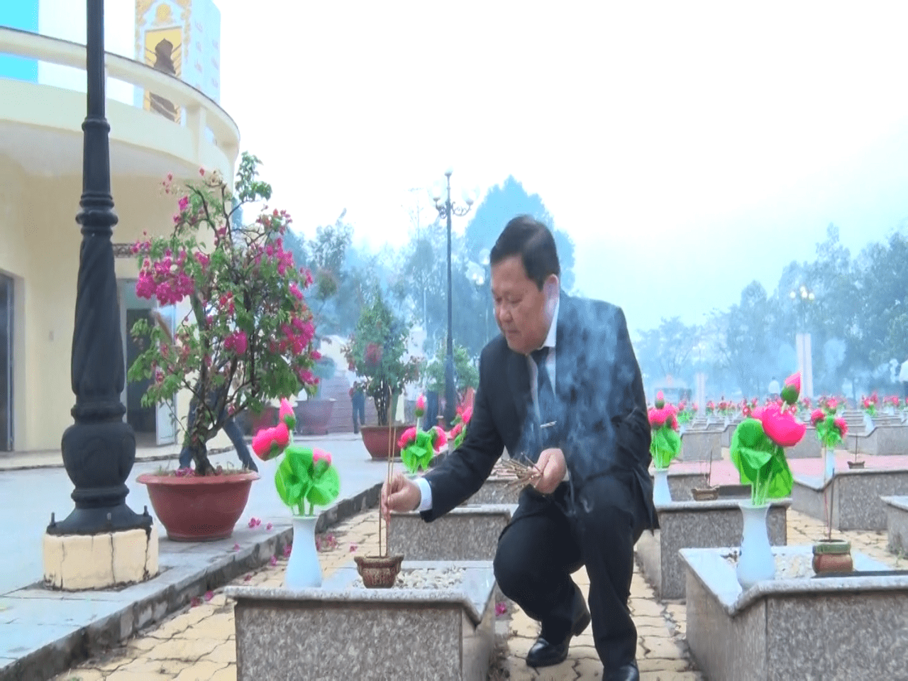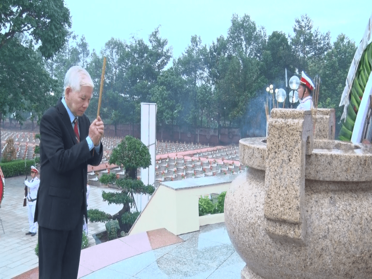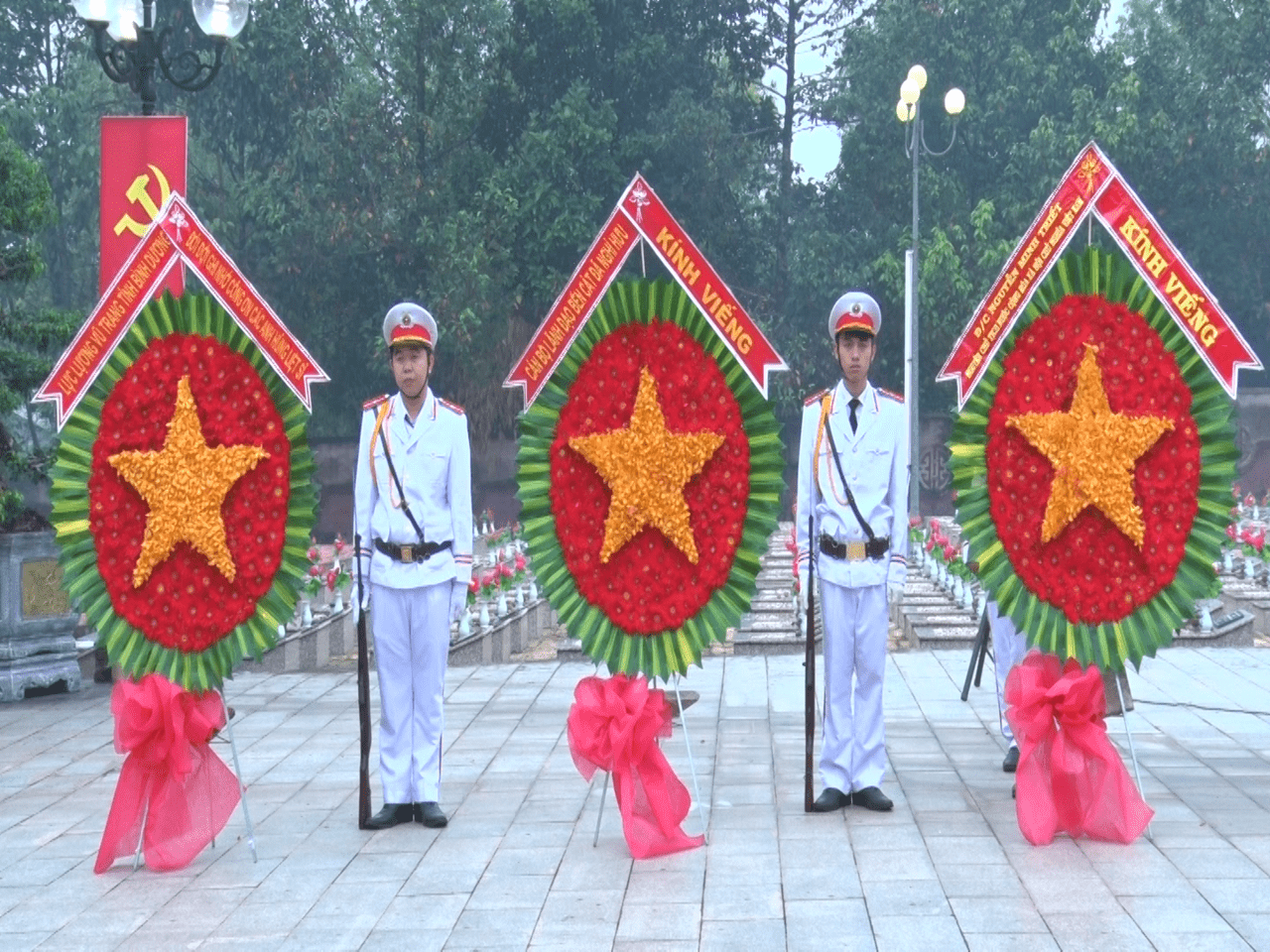 Tại lễ viếng, các đồng chí lãnh đạo thành kính dâng hương, dâng hoa lên tượng đài Tổ quốc ghi công, dành một phút mặc niệm tưởng nhớ công lao to lớn của Chủ tịch Hồ Chí Minh kính yêu cùng các anh hùng liệt sĩ, những người con ưu tú của dân tộc đã anh dũng hy sinh vì độc lập, tự do của Tổ quốc, vì cuộc sống bình yên của nhân dân.