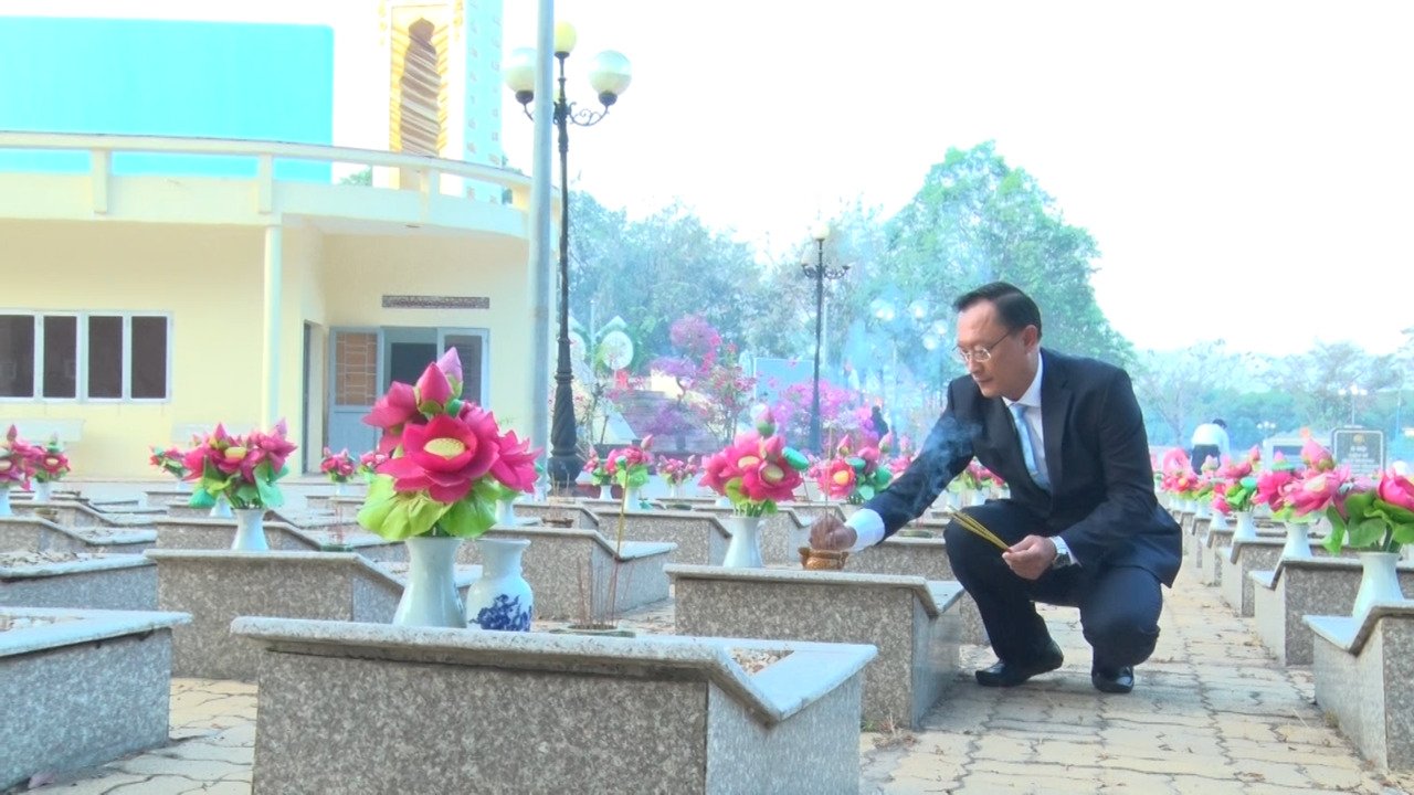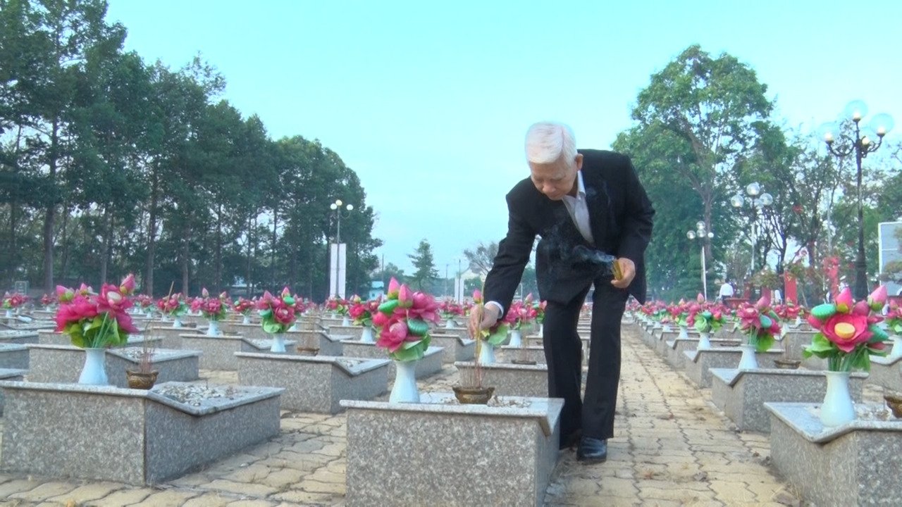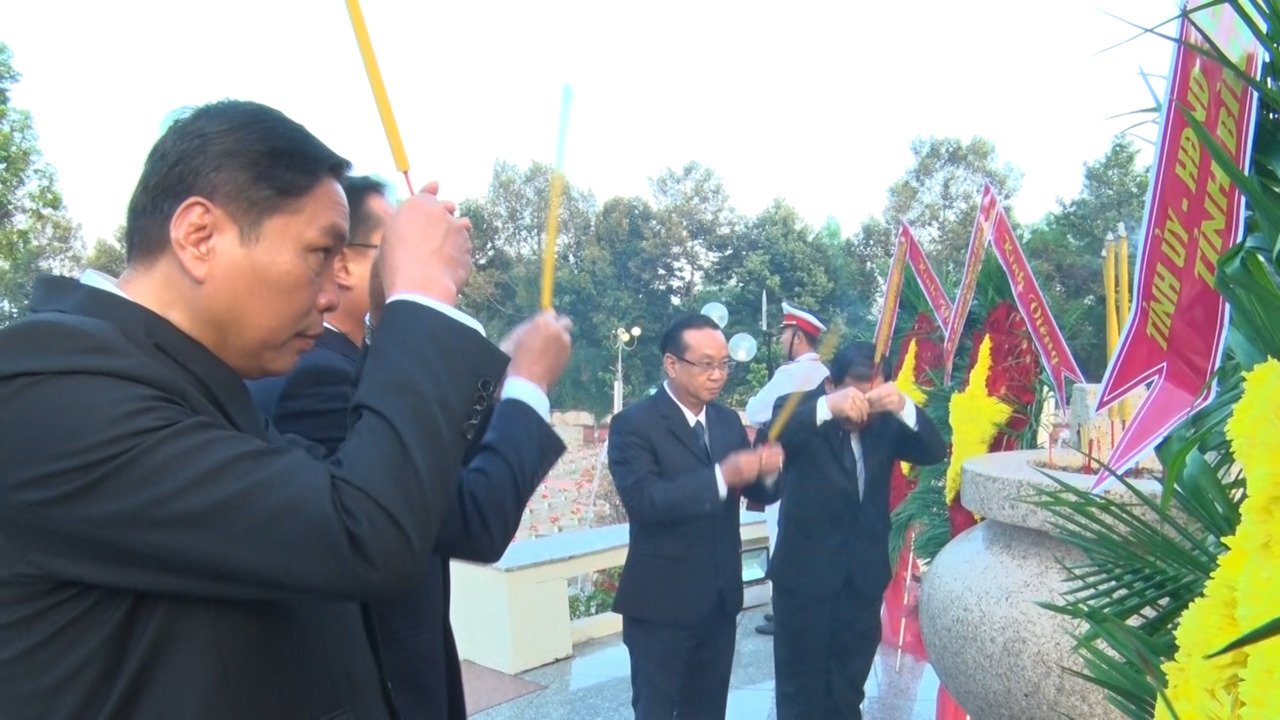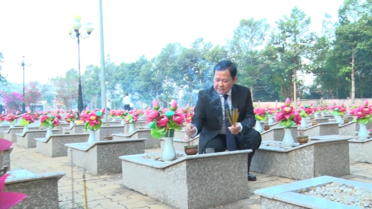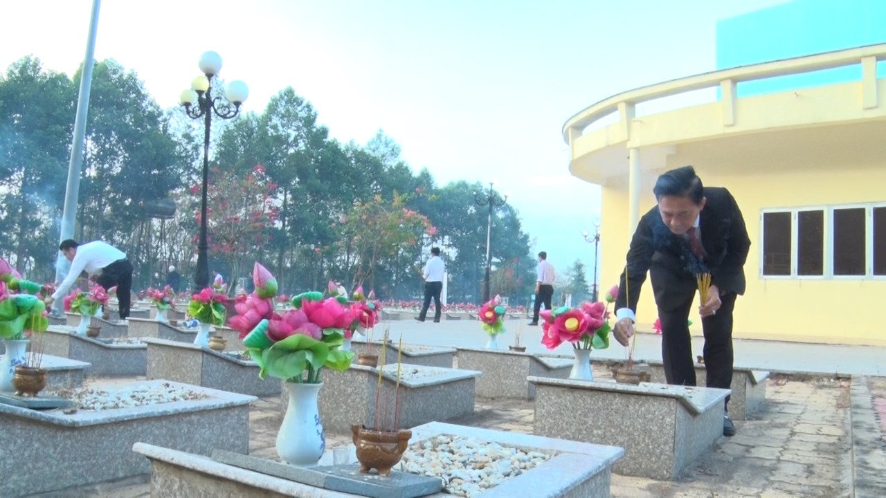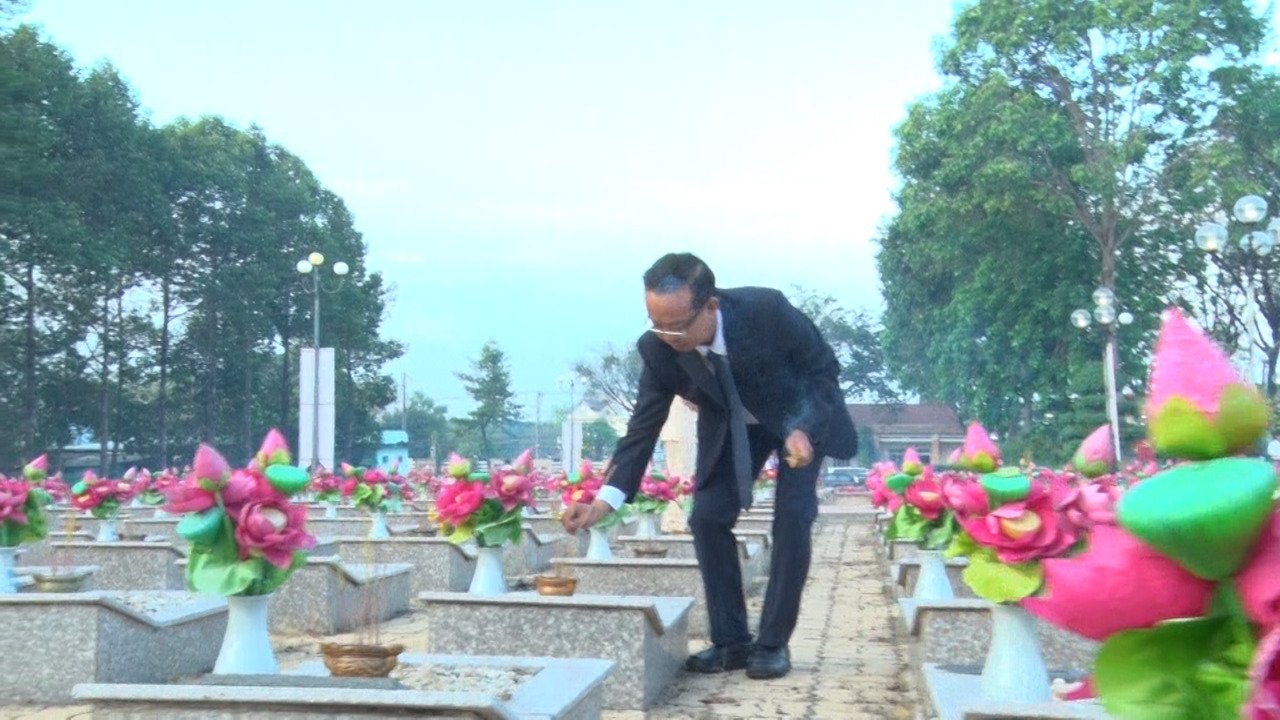 Tại lễ viếng, các đồng chí lãnh đạo thành kính dâng hương, dâng hoa lên tượng đài Tổ quốc ghi công, dành một phút mặc niệm tưởng nhớ công lao to lớn của Chủ tịch Hồ Chí Minh kính yêu cùng các anh hùng liệt sĩ, những người con ưu tú của dân tộc đã anh dũng hy sinh vì độc lập, tự do của Tổ quốc, vì cuộc sống bình yên của nhân dân.