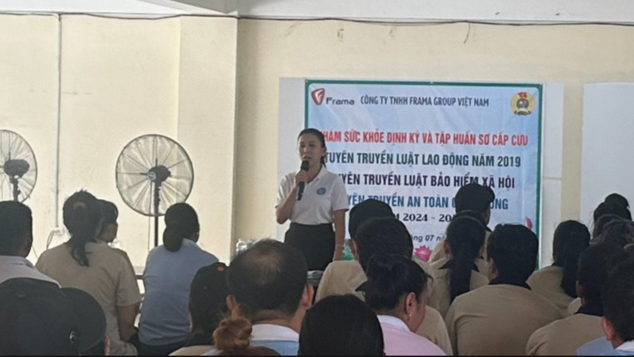 BHXH thành phố Bến Cát tuyên truyền, đối thoại và giải đáp chính sách BHXH, BHYT, BHTN cho người lao động tại công ty TNHH Frama Group Việt Nam.