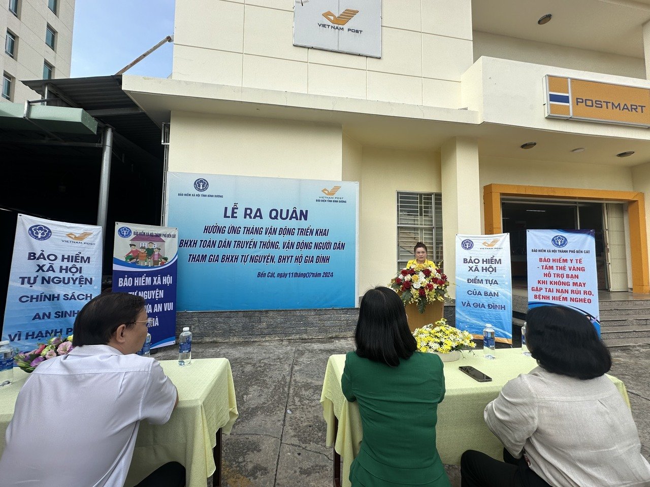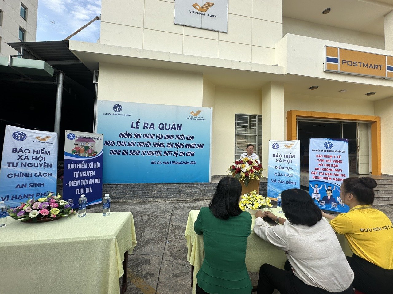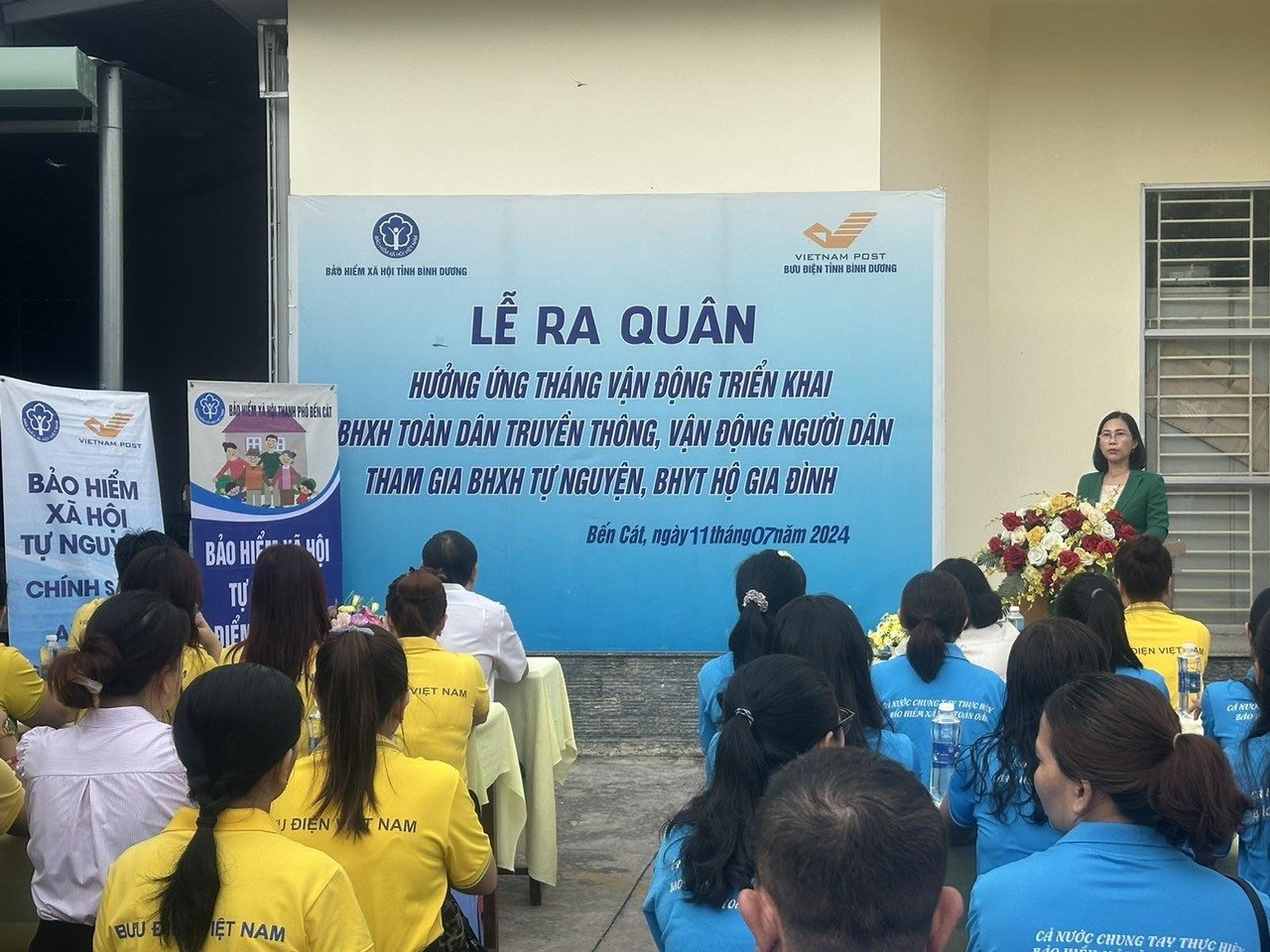 Để đạt mục tiêu trong tháng ra quân, đại diện Lãnh đạo BHXH và Bưu điện thành phố Bến Cát yêu cầu tất cả lực lượng tham gia lễ ra quân phát huy tinh thần xung kích, sáng tạo, nỗ lực phấn đấu đạt chỉ tiêu được giao cao nhất trong ngày ra quân, tháng ra quân. Về phía Bưu điện thành phố theo dõi, linh hoạt trong phân công, phân nhóm cụ thể theo từng địa bàn để truyền thông, tư vấn đạt hiệu quả cao nhất.