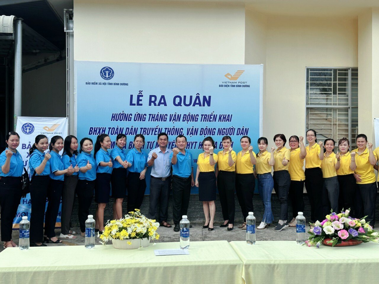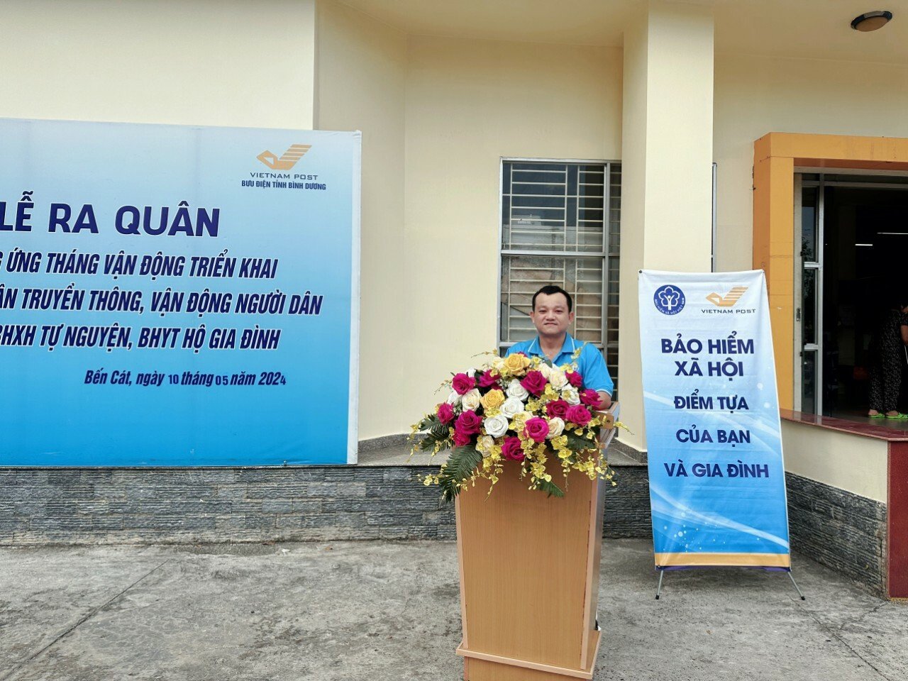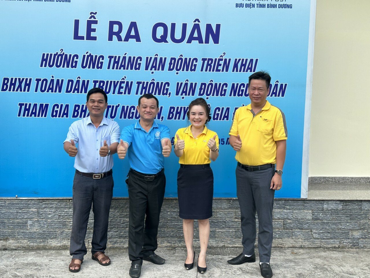 BHXH thành phố và Bưu điện thành phố Bến Cát phối hợp tổ chức “Lễ ra quân nhân Tháng vận động triển khai BHXH toàn dân và Tháng Công nhân”.