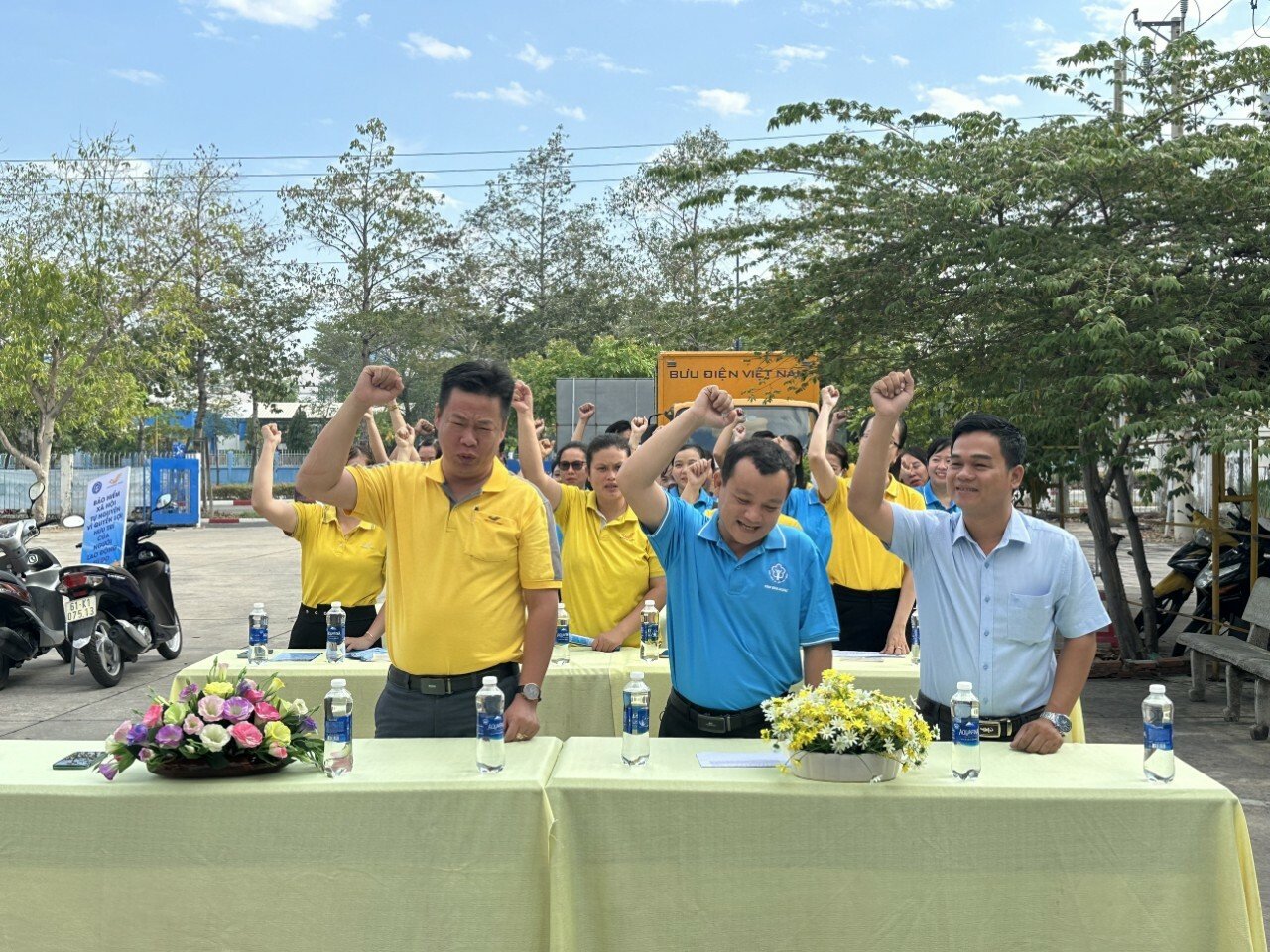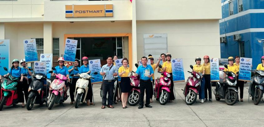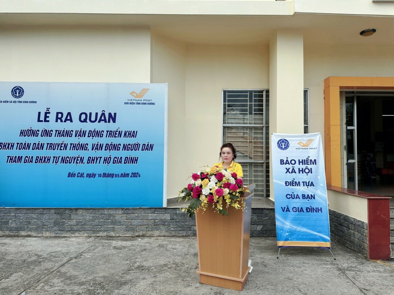 BHXH thành phố và Bưu điện thành phố Bến Cát phối hợp tổ chức “Lễ ra quân nhân Tháng vận động triển khai BHXH toàn dân và Tháng Công nhân”.