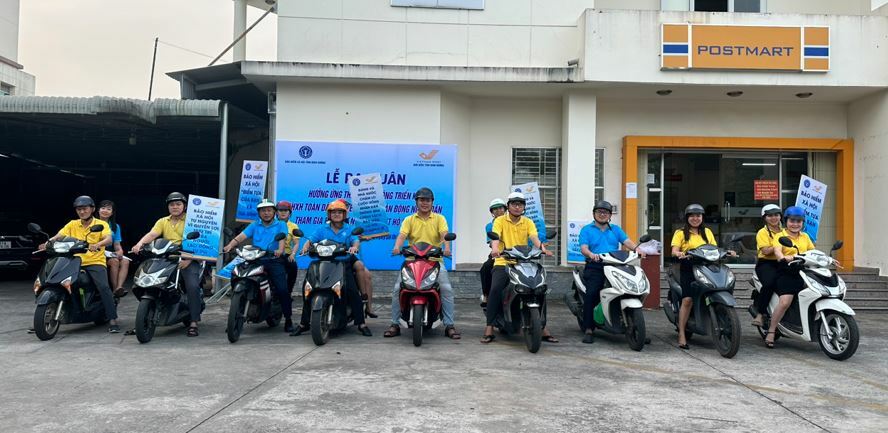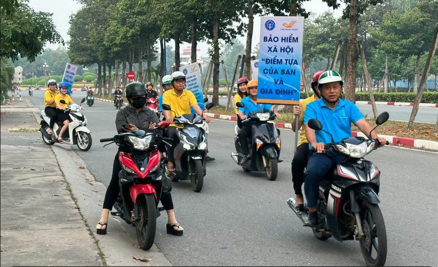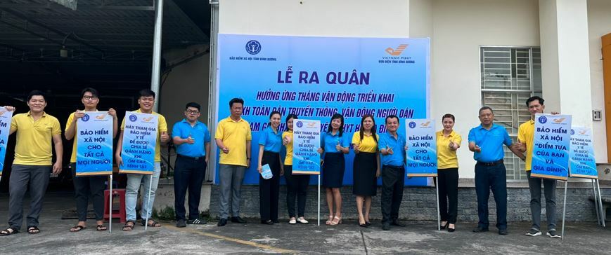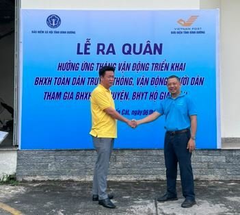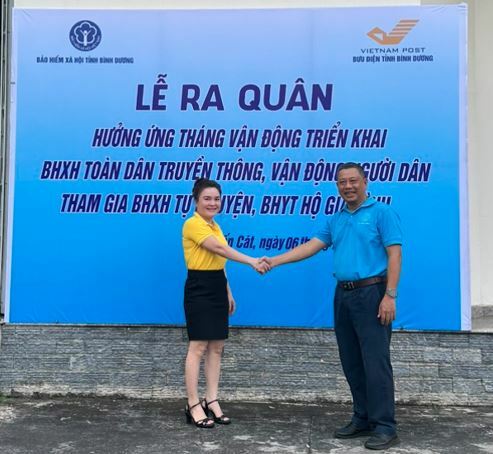 BHXH thị xã phối hợp với Bưu điện thị xã Bến Cát tổ chức lễ ra quân Tháng cao điểm truyền thông, vận động toàn dân tham gia BHXH, BHYT.