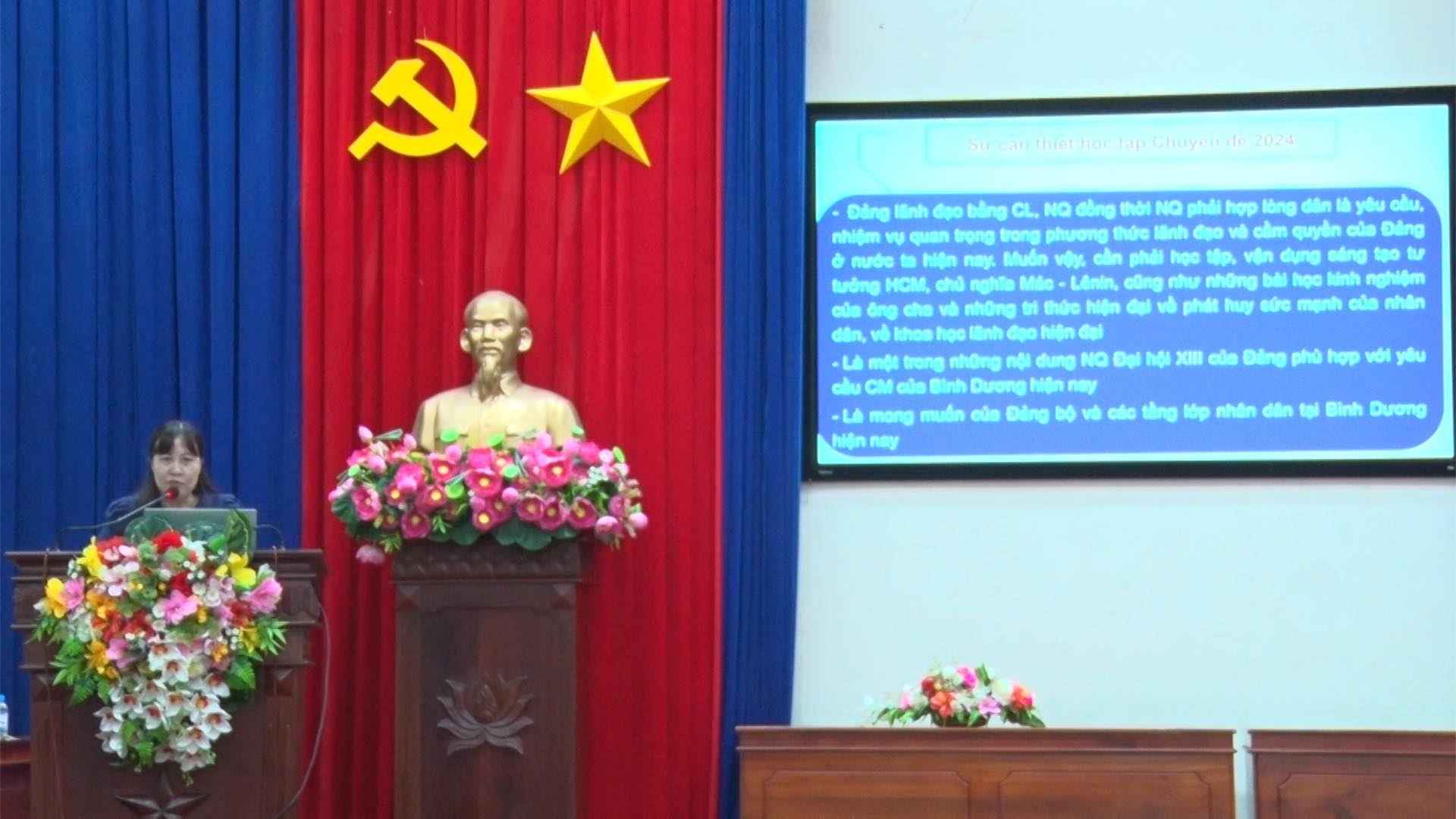 Tại lớp học, các học viên được truyền đạt chuyên đề: vận dụng tư tưởng Hồ Chí Minh trong quá trình xây dựng và thực hiện Nghị quyết để “ý Đảng hợp lòng dân” cho cán bộ Đoàn, đoàn viên thanh niên trên địa bàn thành phố Bến Cát, trong đó, trọng tâm tập trung vào tư tưởng Hồ Chí Minh về ý Đảng hợp lòng dân; quan điểm của Đảng ta về vận dụng tư tưởng Hồ Chí Minh trong xây dựng và thực hiện nghị quyết để “ý Đảng hợp lòng dân”; cán bộ Đoàn, đoàn viên, thanh niên trên địa bàn thành phố Bến Cát vận dụng tư tưởng Hồ Chí Minh trong quá trình xây dựng và thực hiện nghị quyết để “ý Đảng hợp lòng dân”…
