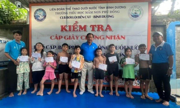 Ngày 30/7, tại hồ bơi Phù Đổng, Câu lạc bộ Bơi lội Bến Cát phối hợp với Liên đoàn Thể thao dưới nước tỉnh Bình Dương tổ chức thi và cấp giấy chứng nhận bơi cho 121 học viên trên địa bàn thị xã.