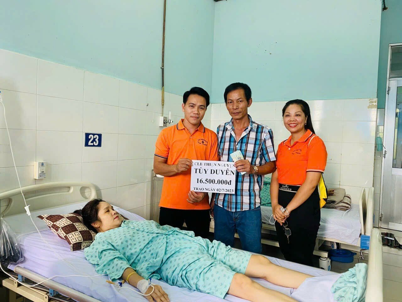 Vừa qua, Câu lạc bộ Thiện nguyện Tùy Duyên đến bệnh viện thăm và trao số tiền 16,5 triệu đồng cho chị Nguyễn Thị Lan - xã Trung Lập Thượng, huyện Củ Chi, thành phố Hồ Chí Minh, hỗ trợ chị Lan điều trị bệnh. Được biết, chị Lan bị nhiễm trùng ten động mạch vành chủ, phình động mạch ngực, nghẽn động mạch não. Hoàn cảnh gia đình hết sức khó khăn.