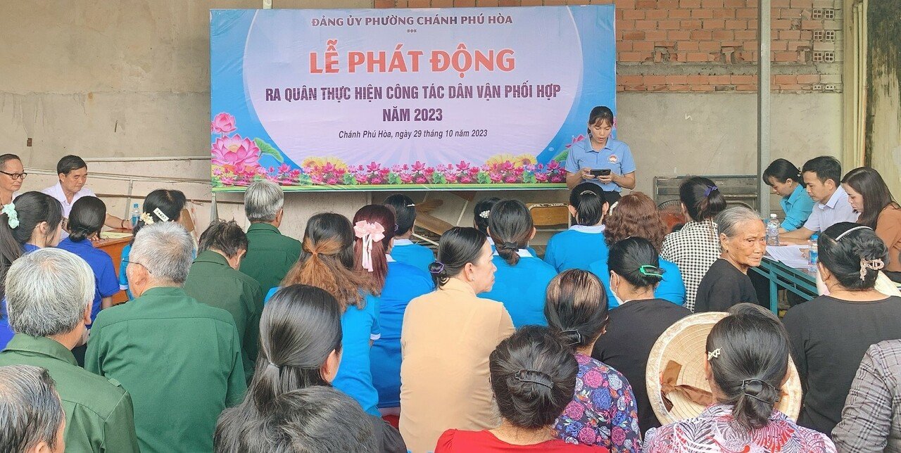 Ngày 29/10, Đảng ủy phường Chánh Phú Hòa tổ chức ra quân thực hiện công tác dân vận phối hợp tại khu phố 9.