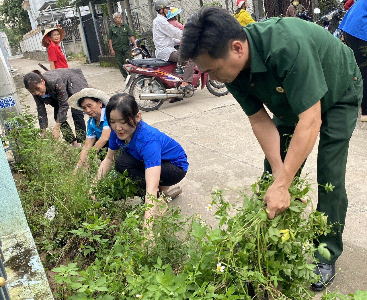 Sau lễ phát động, lãnh đạo phường cùng đoàn viên, hội viên trồng hoa ven đường và vệ sinh, phát hoang một số tuyến đường trong khu phố.