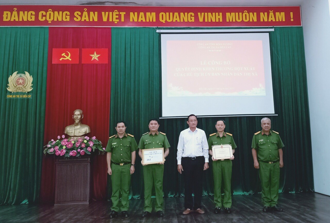 Chủ tịch UBND thị xã khen thưởng đột xuất Công an thị xã Bến Cát