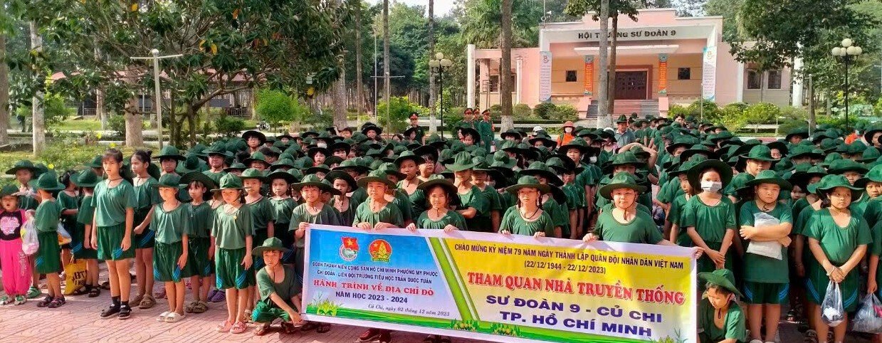 Theo đó, các em học sinh được trải nghiệm tại Sư đoàn 9 – huyện Củ Chi, thành phố Hồ Chí Minh. Tại đây học sinh được tham gia nhiều hoạt động như: tham quan nhà truyền thống; tập thể dục kết hợp sắp xếp đội ngũ, ổn định đội hình trong quân đội; gấp xếp nội vụ; tham quan thao trường quân đội; tham quan và trải nghiệm khu tăng gia sản xuất; giao lưu văn nghệ…