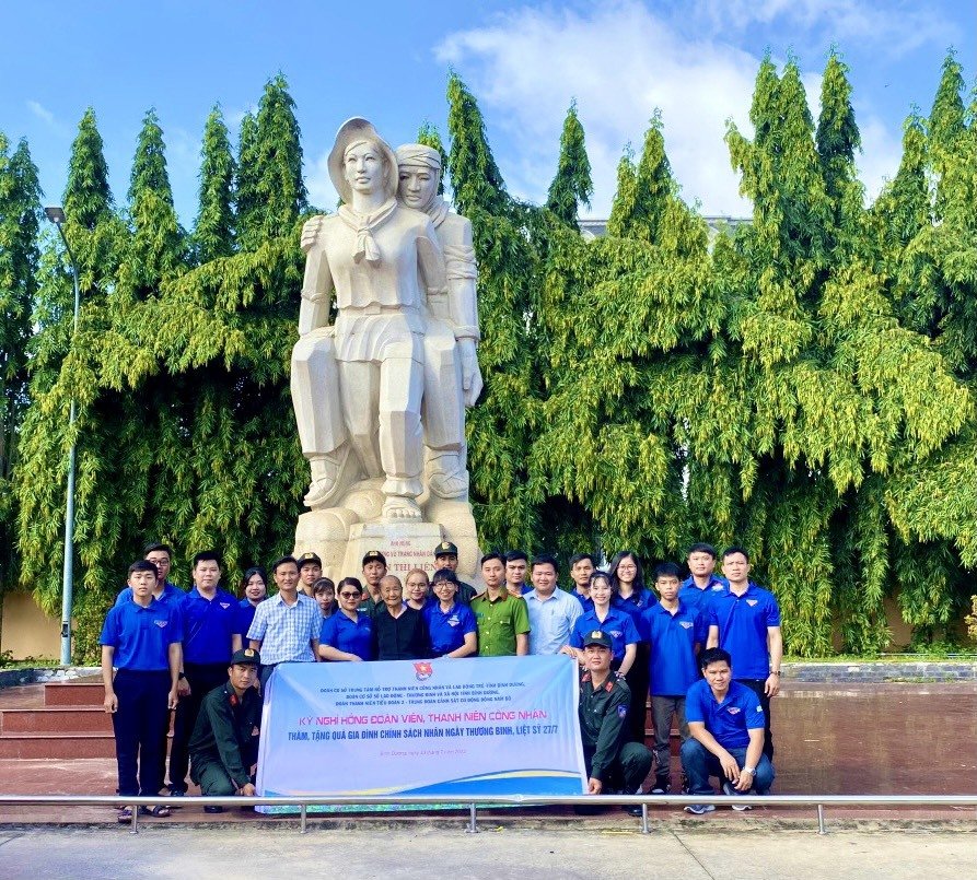 Thiết thực tổ chức các hoạt động kỷ niệm 76 năm Ngày Thương binh - Liệt sĩ (27/7/1947 - 27/7/2023), ngày 23/7, Đoàn cơ sở Trung tâm Hỗ trợ Thanh niên công nhân và Lao động trẻ tỉnh (Khi công nghiệp Mỹ Phước 3) phối hợp Đoàn Thanh niên Tiểu đoàn 2 - E25 Cảnh sát cơ động và Đoàn cơ sở Sở Lao động - Thương binh và Xã hội tỉnh tổ chức chương trình Kỳ nghỉ hồng “Tri ân các gia đình liệt sĩ”.