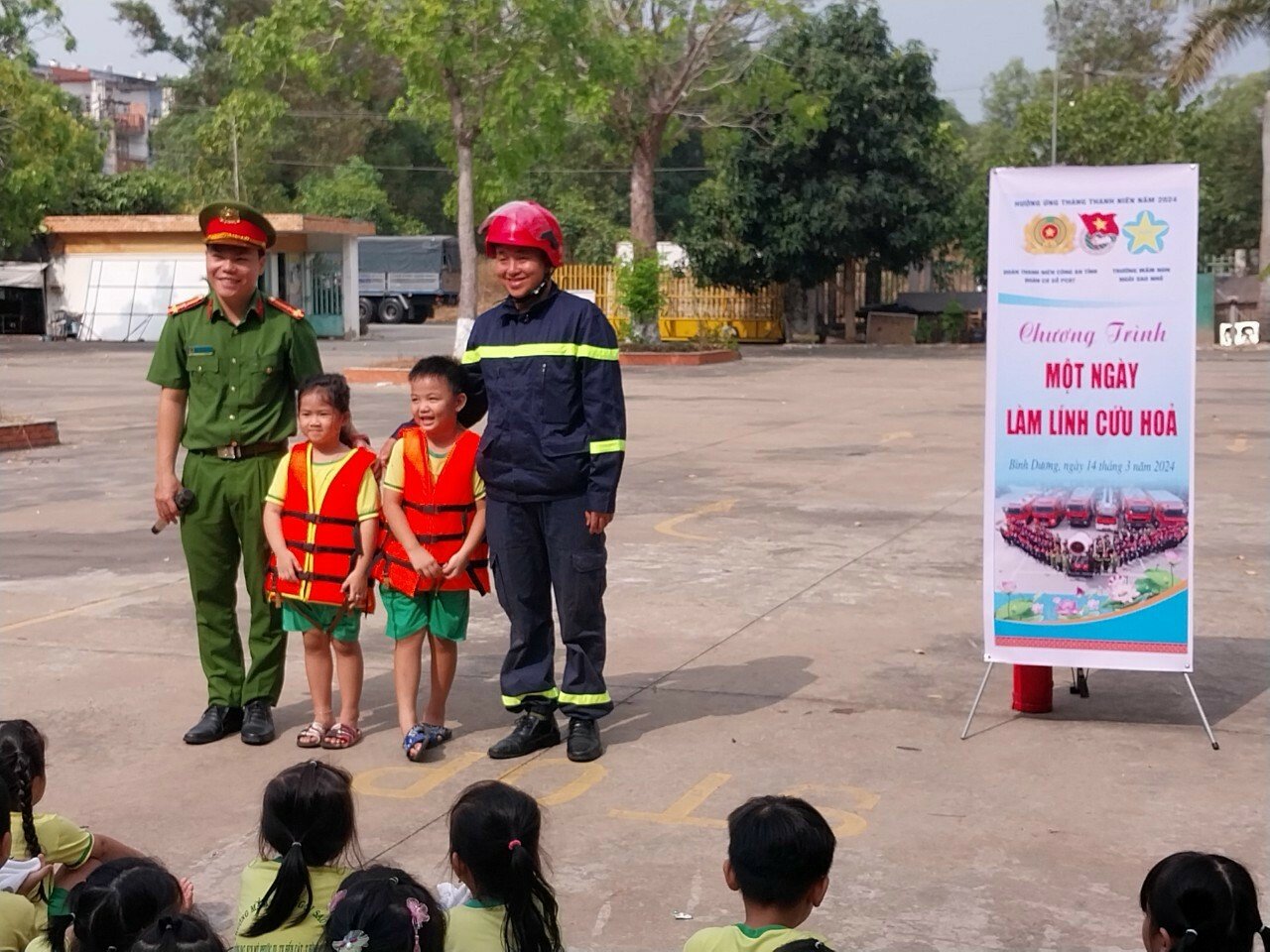 Ngày 14/03, trường Mầm non Ngôi Sao Nhỏ thuộc Trung tâm hỗ trợ thanh niên công nhân và lao động trẻ tỉnh – Khu công nghiệp Mỹ Phước 3 phối hợp với Đoàn cơ sở PC07 - Công an tỉnh Bình Dương tổ chức chương trình "Một ngày làm lính cứu hỏa".