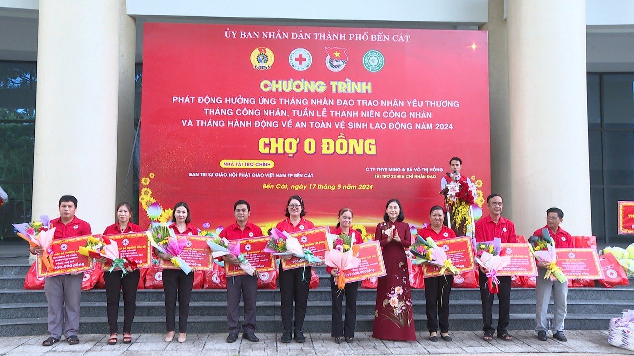 Với mục đích tăng cường trách nhiệm của cấp ủy đảng, chính quyền, các lực lượng xã hội trong công tác chữ thập đỏ, công tác công đoàn, công tác thanh niên, nâng cao nhận thức, thúc đẩy lối hành xử nhân ái trong các tầng lớp nhân dân. Đây là tháng cao điểm để các cấp đồng loạt triển khai nhiều hoạt động vận động các nguồn lực, xây dựng quỹ nhằm mục đích hỗ trợ cho các đối tượng dễ bị tổn thương trong cộng đồng, góp phần xây dựng cộng đồng hạnh phúc. Tại lễ phát động, Hội Chữ thập đỏ, Liên đoàn lao động, Thành đoàn Bến Cát đã trao tặng 23 phần quà cho các địa chỉ nhân đạo trong quý II mỗi phần trị giá 1,5 triệu đồng và kèm theo 1 phần quà. Đồng thời tổ chức phiên chợ 0 đồng với 15 gian hàng gồm các nhu yếu phẩm cần thiết cho cuộc sống dành tặng cho 300 người dân, công nhân lao động, người khiếm thị có hoàn cảnh khó khăn với tổng số tiền 150 triệu đồng.