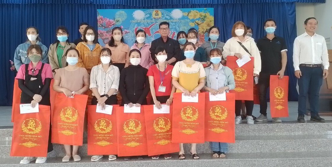 Tại chương trình, Công đoàn các KCN Bến Cát đã tặng 500 phần quà cho cán bộ công đoàn cơ sở có hoàn cảnh khó khăn xa quê, công nhân lao động bị tai nạn nghề nghiệp, bệnh hiểm nghèo, mỗi phần trị giá 500 ngàn đồng.