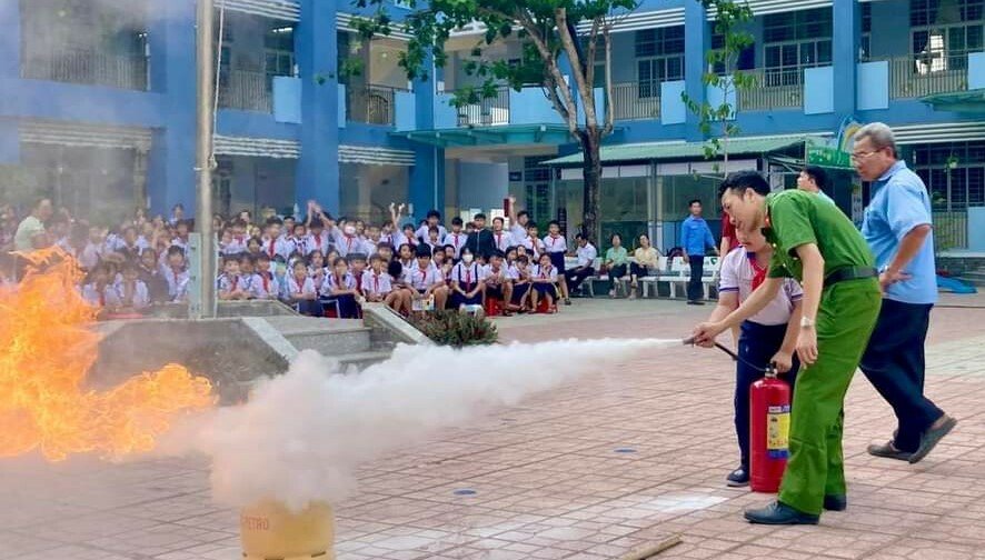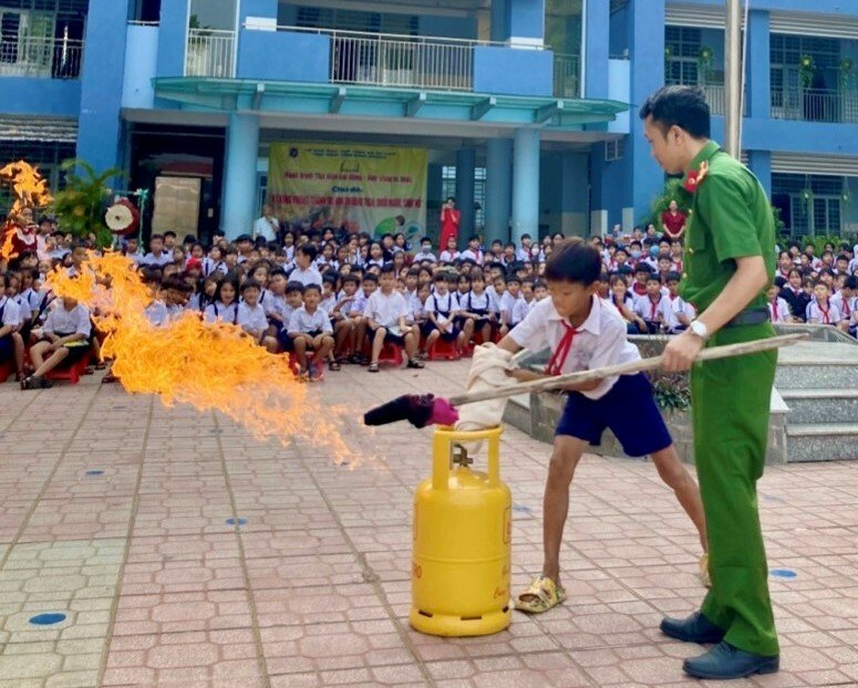 Trong chương trình, các em học sinh được tham gia nhiều hoạt động như: đọc sách, báo, truyện; trả lời câu đố, câu hỏi có thưởng; nghe tuyên truyền về tai nạn thương tích, đuối nước, cháy nổ; được các chú công an hướng dẫn thực hành khóa bình gas khi đang cháy, cách sử dụng bình chữa cháy; hướng dẫn cách thoát thân bằng ống nước chữa cháy từ trên lầu xuống.