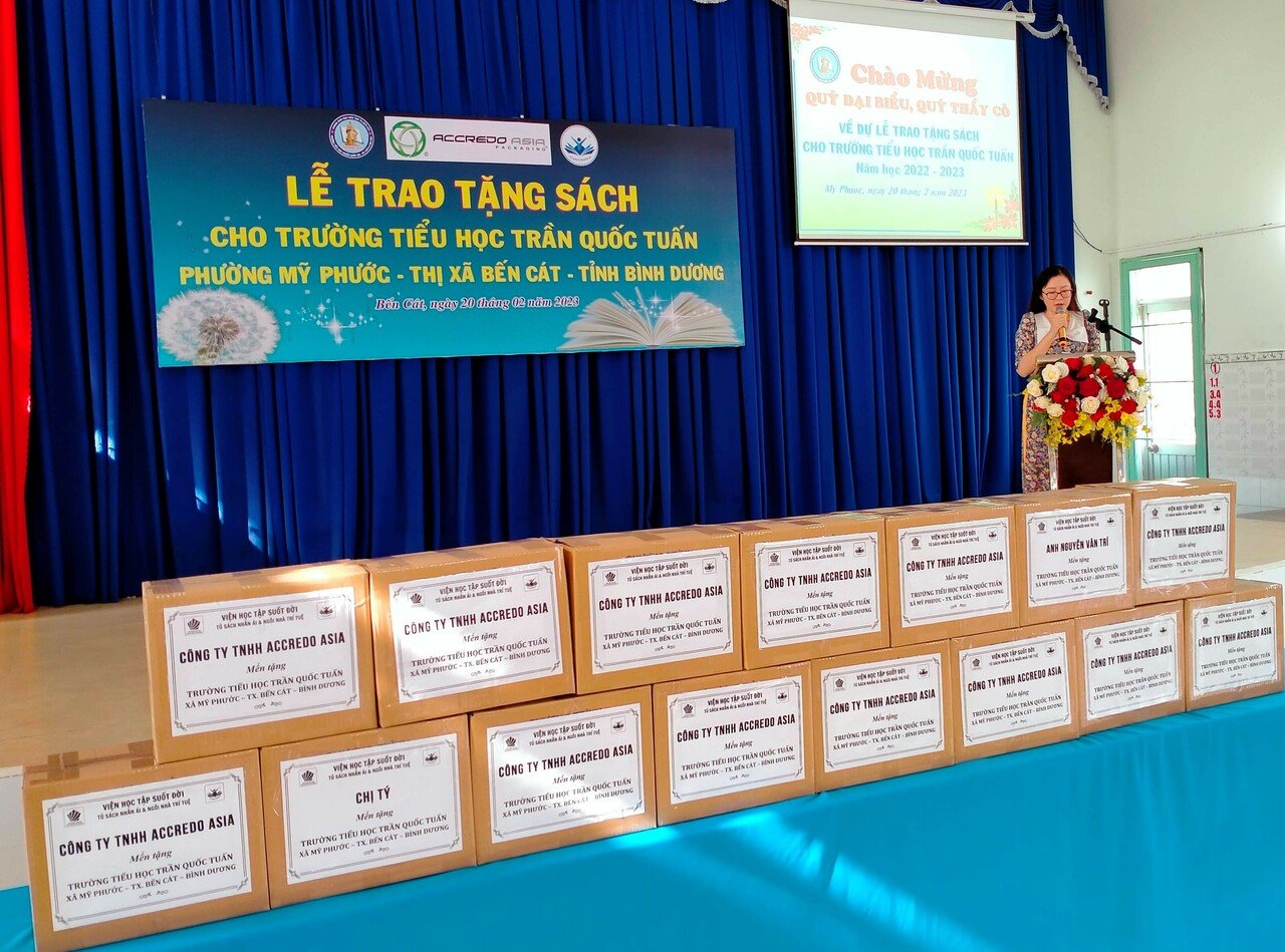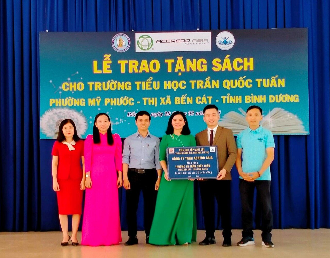 Tại chương trình, Công ty AcCredo Asia trao 15 Tủ sách Nhân Ái cho trường Tiểu học Trần Quốc Tuấn với hàng trăm bản sách gồm nhiều thể loại như: khoa học, văn học, lịch sử, địa lý, kỹ năng sống, học tiếng Anh, sách song ngữ… cho từng lứa tuổi học sinh, với tổng giá trị 22.500.000 đồng.