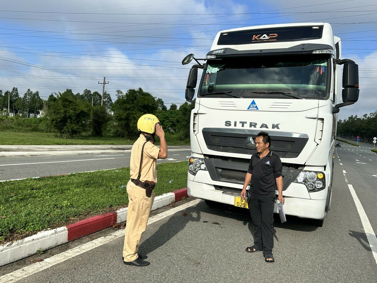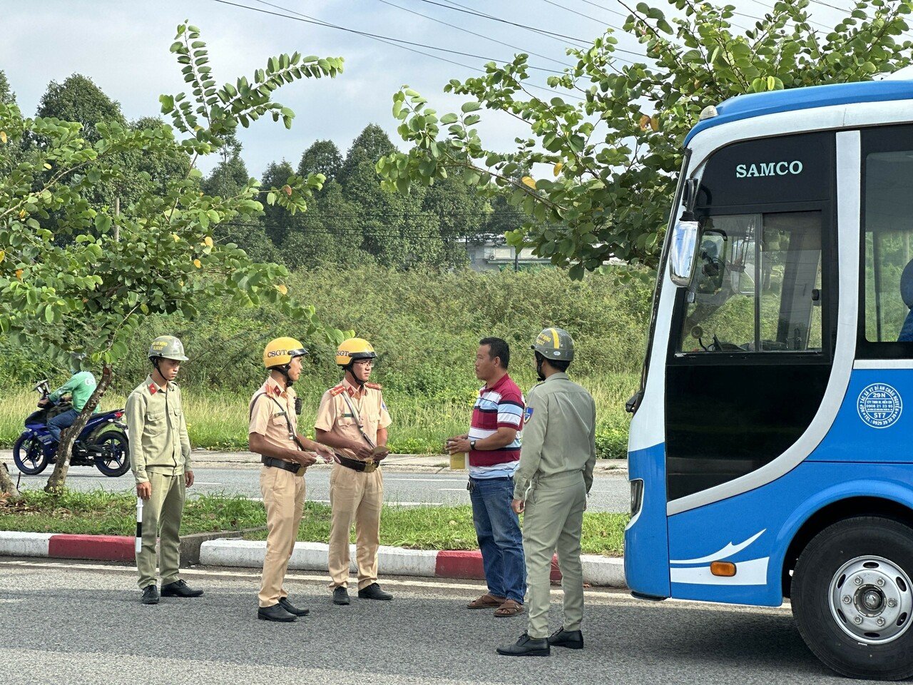 Công an Bến Cát ra quân tổng kiểm soát xe khách và xe tải hàng hóa bằng container