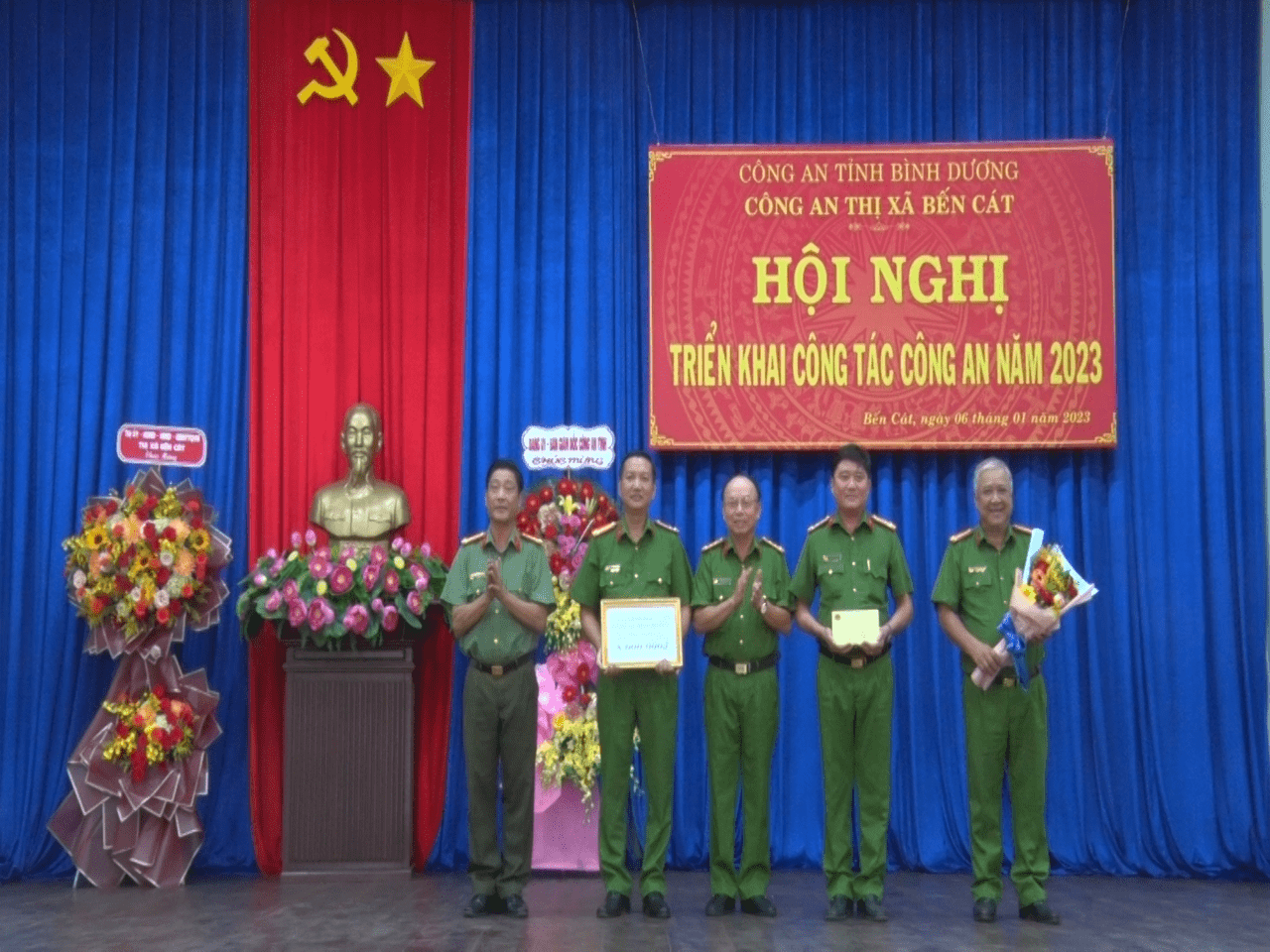 Chiều ngày 06/01, Công tác tỉnh Bình Dương đã tặng giấy khen và thưởng nóng số tiền 8.000.000 đồng cho tập thể Công an thị xã Bến Cát có thành tích xuất sắc trong công tác đấu tranh, bắt, xử lý 13 đối tượng có hành vi vận chuyển 130 tấn đường nhập lậu trên địa bàn phường Tân Định.