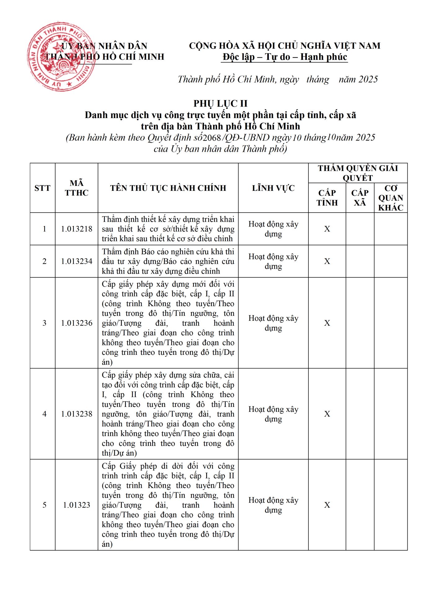 Công bố danh mục thủ tục hành chính cung cấp dịch vụ công trực tuyến trên địa bàn Thành phố Hồ Chí Minhcung cấp trên ...
