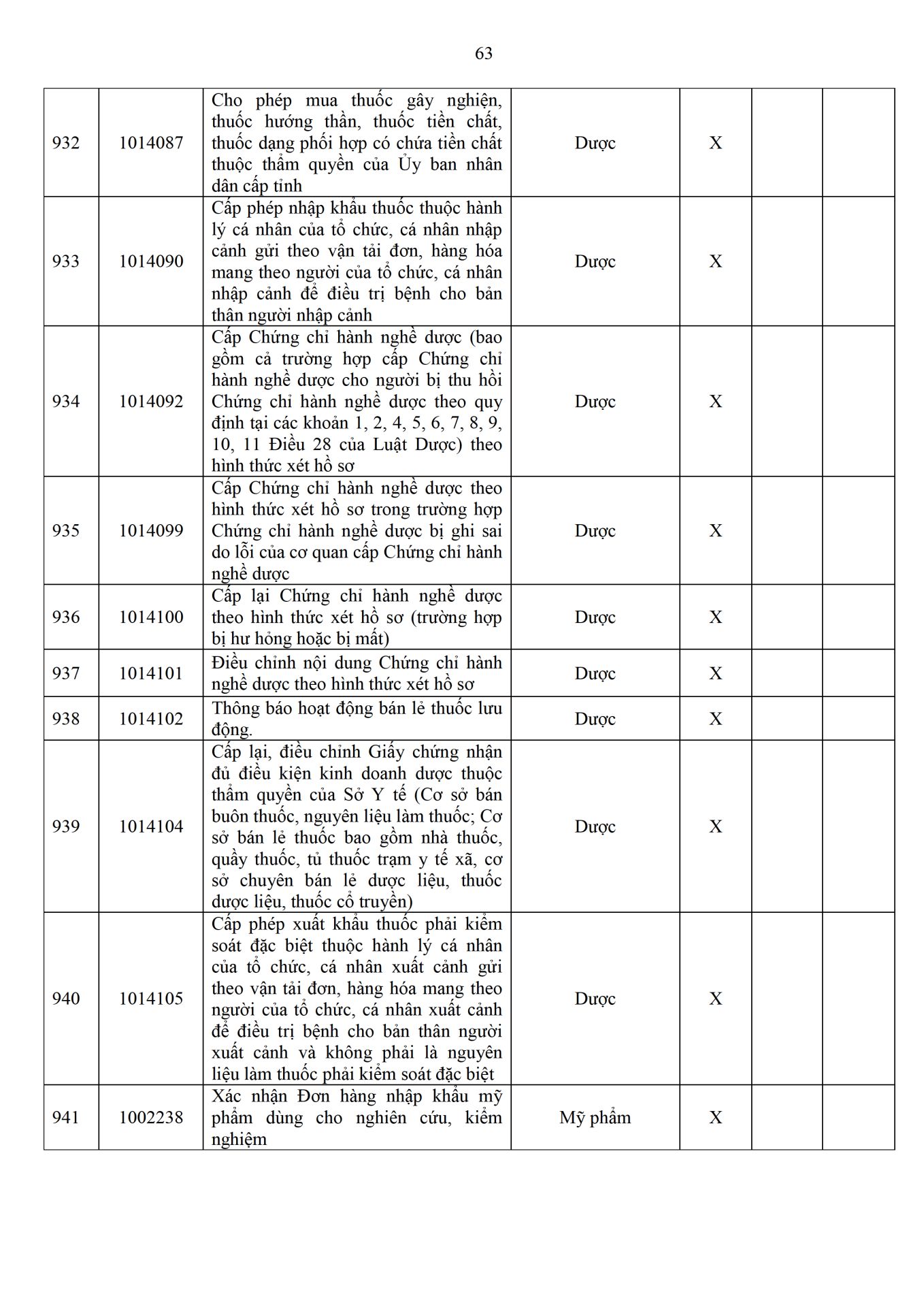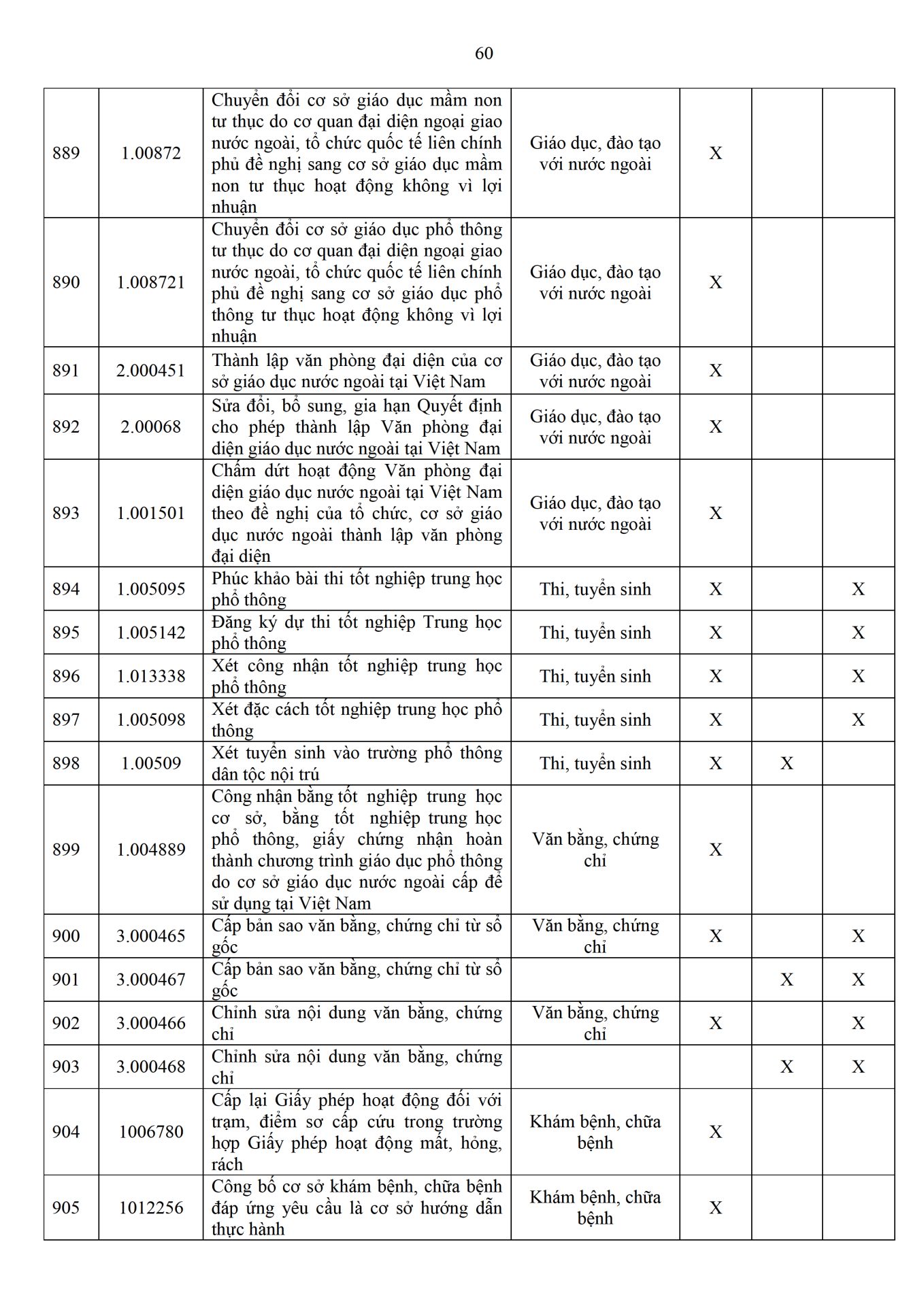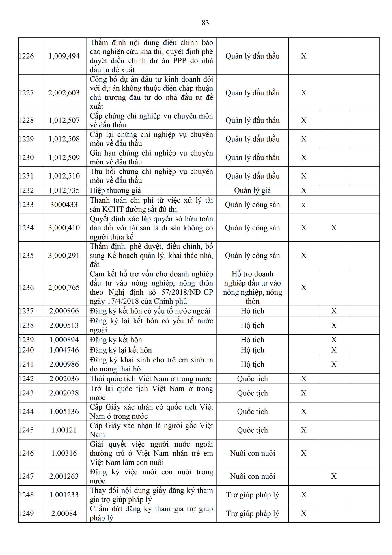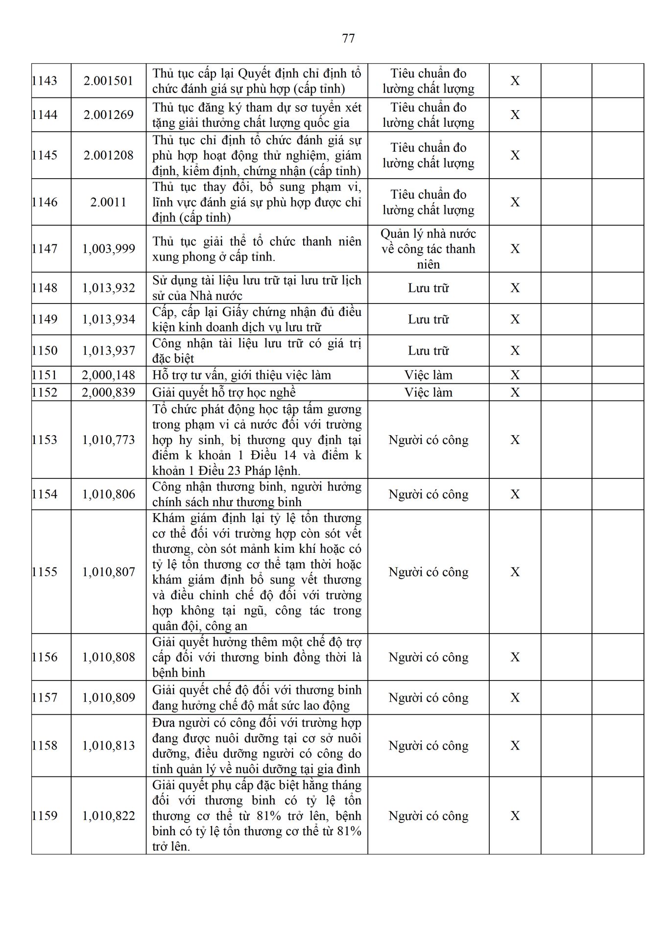 Danh mục dịch vụ công trực tuyến toàn trình tại cấp tỉnh, cấp xã từ trang 59 đến 117