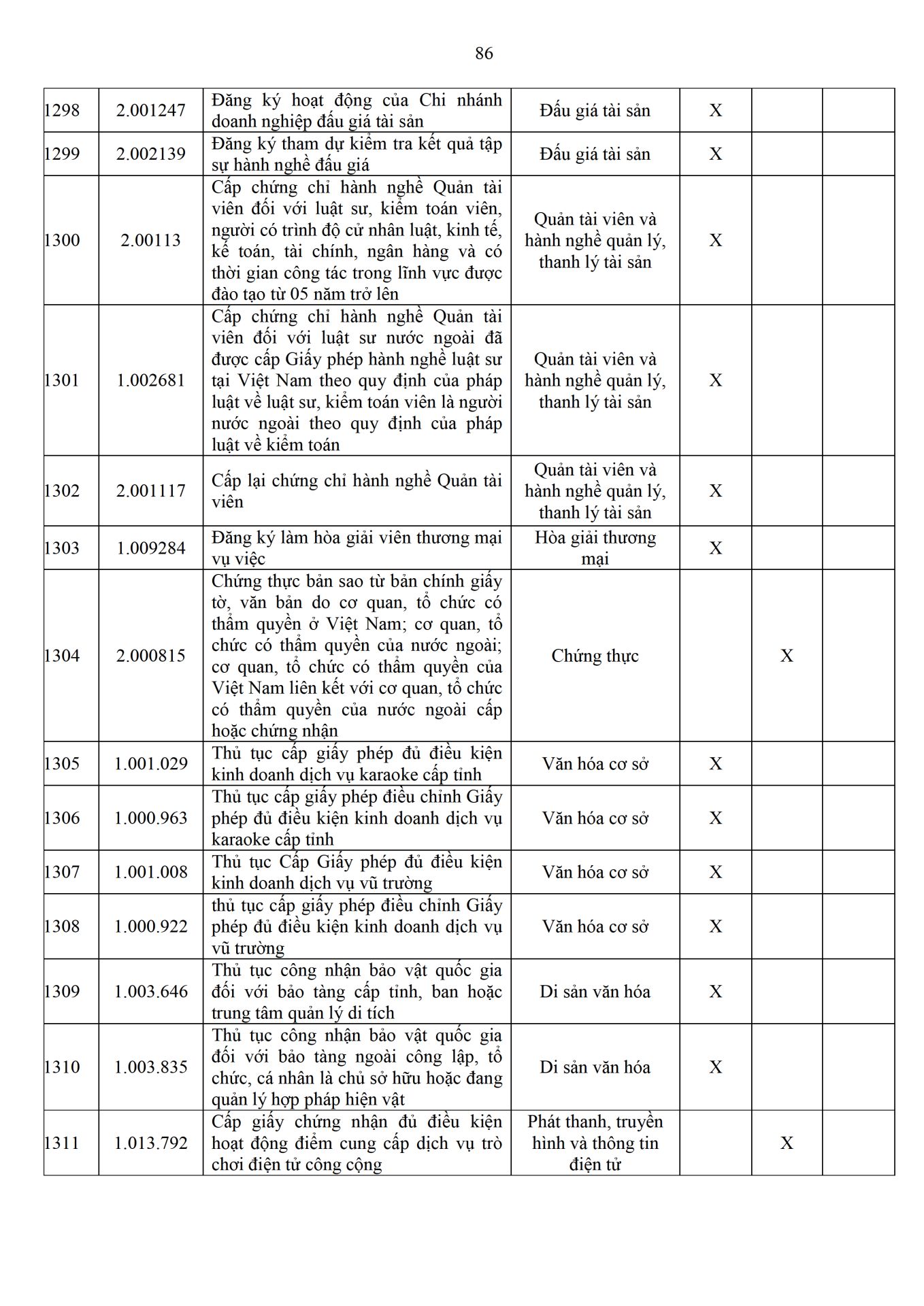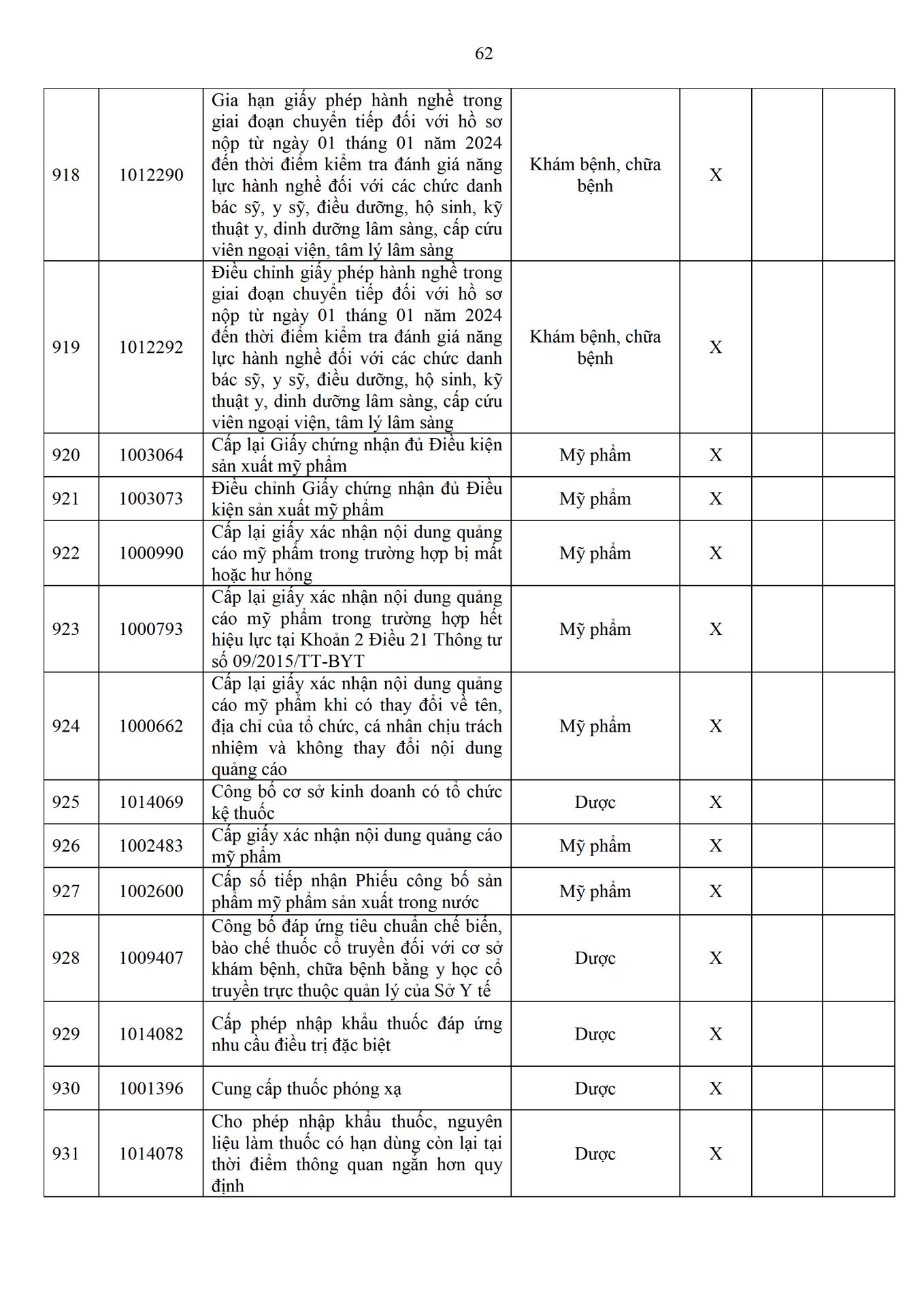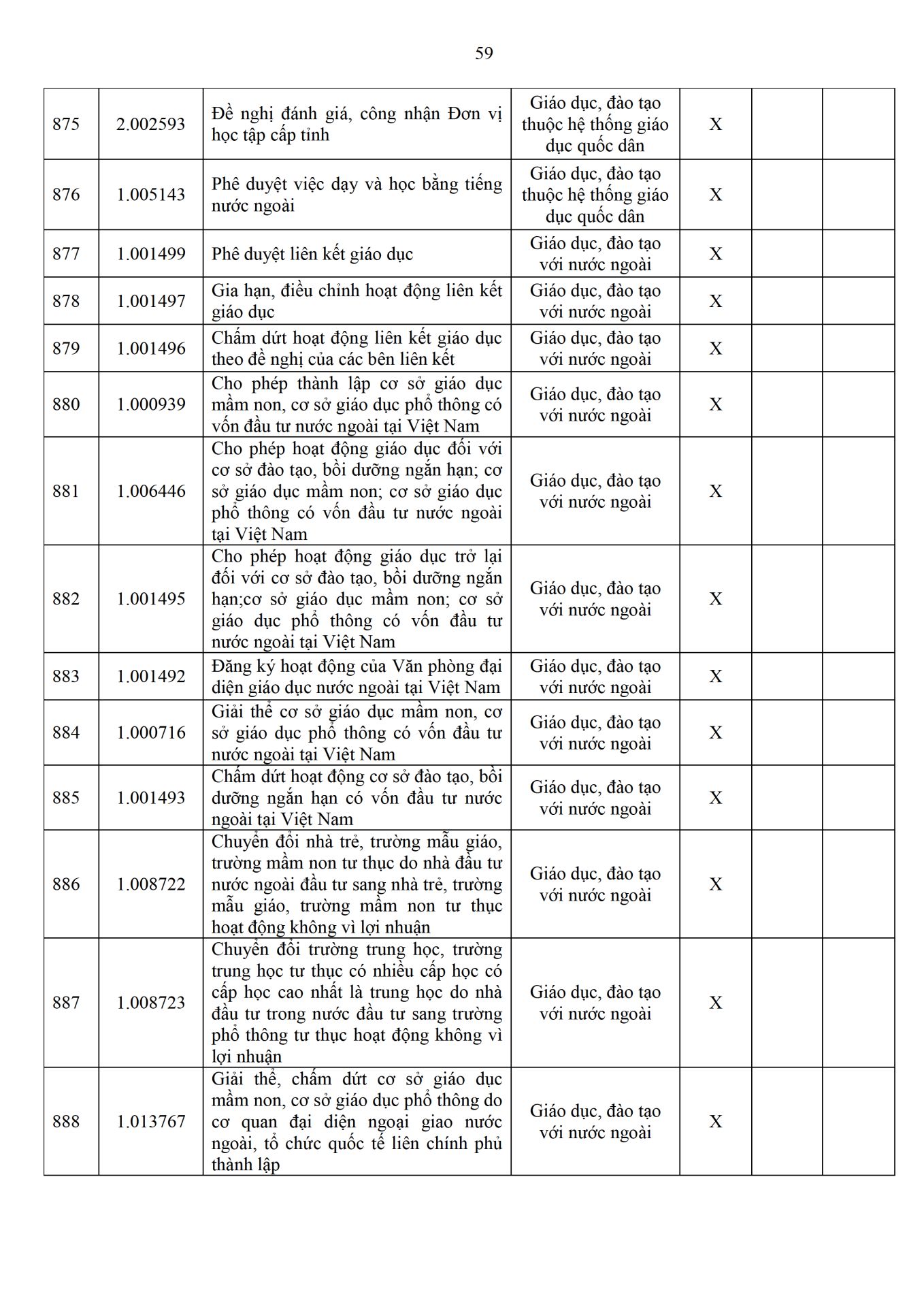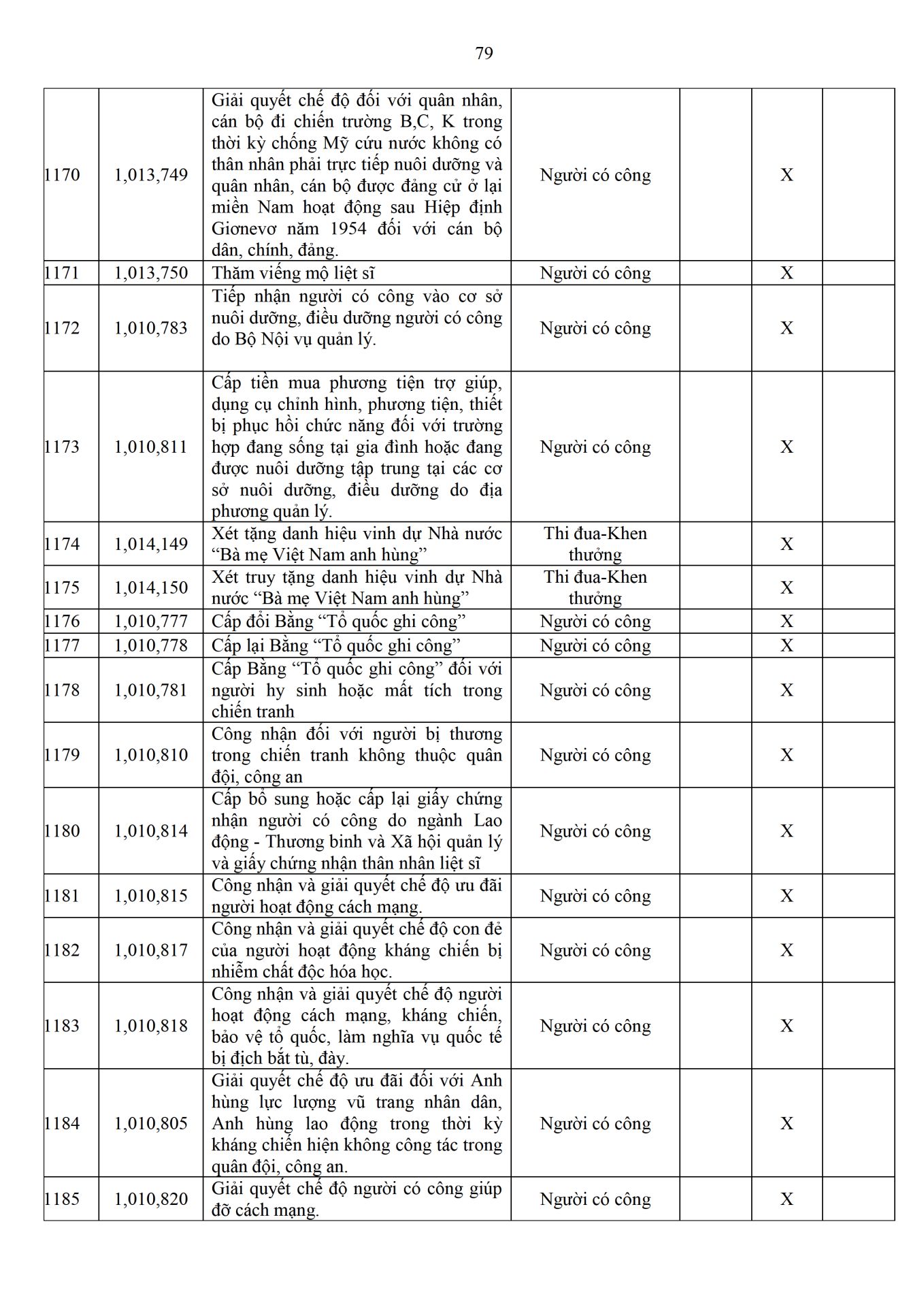 Danh mục dịch vụ công trực tuyến toàn trình tại cấp tỉnh, cấp xã từ trang 59 đến 117