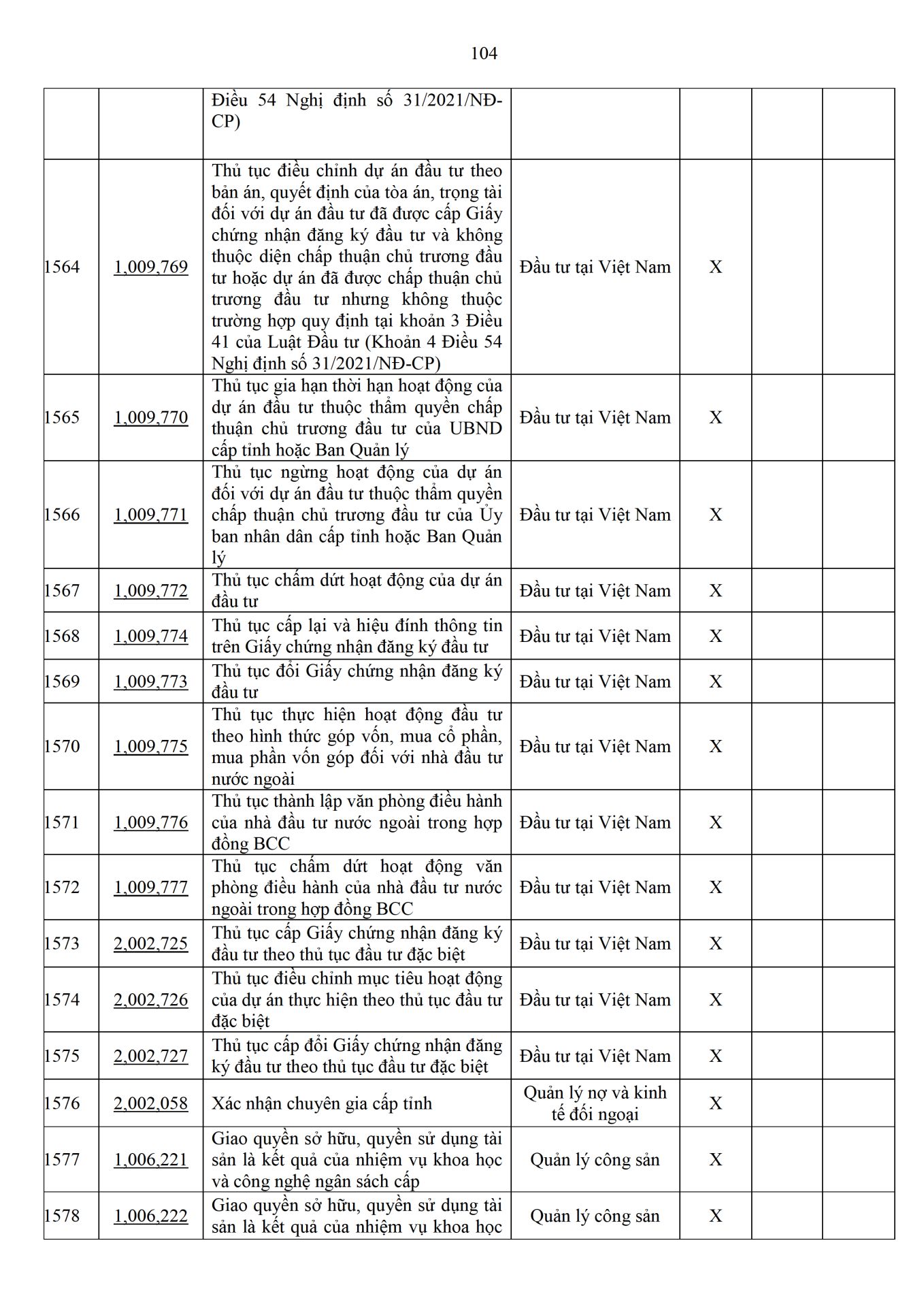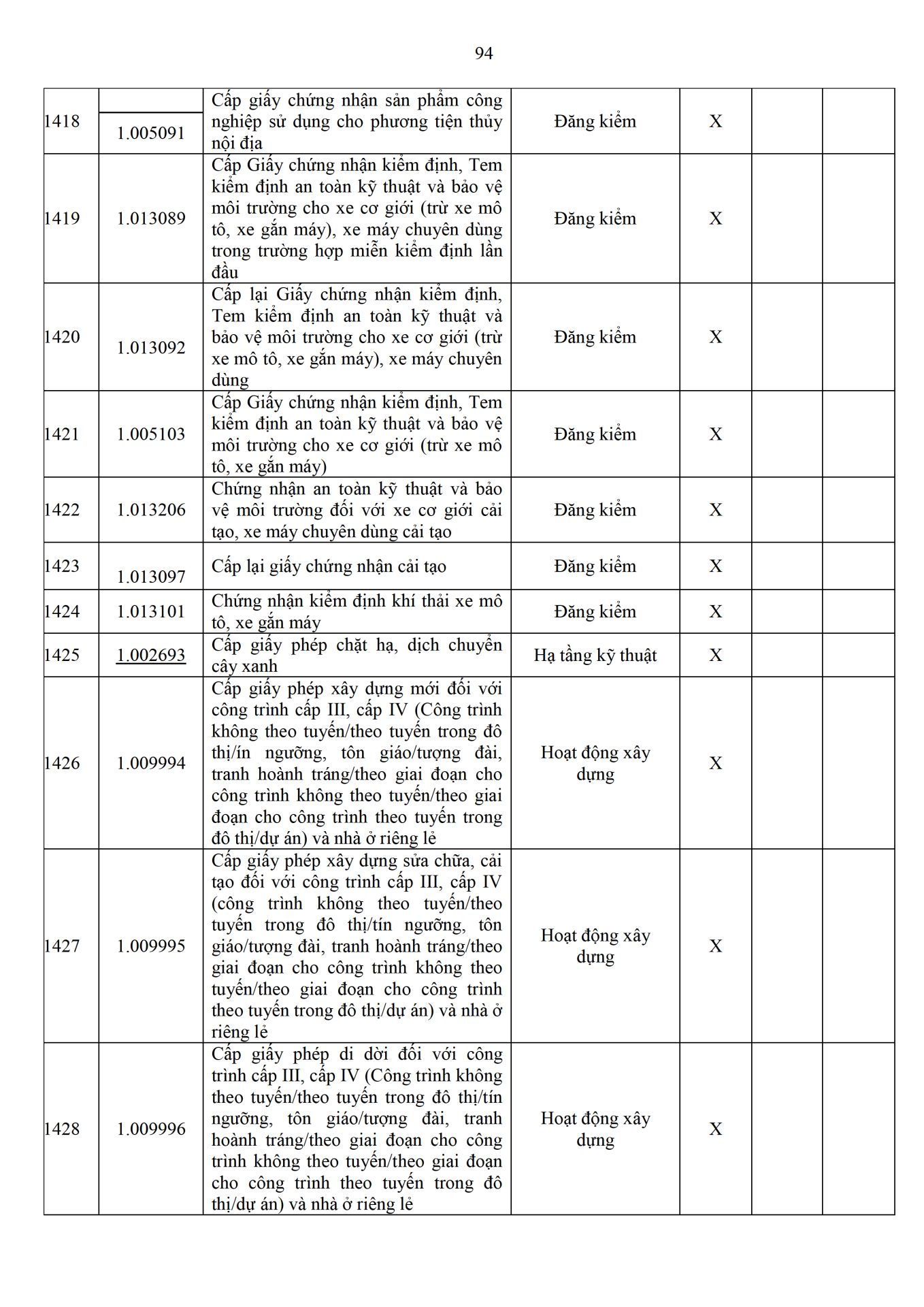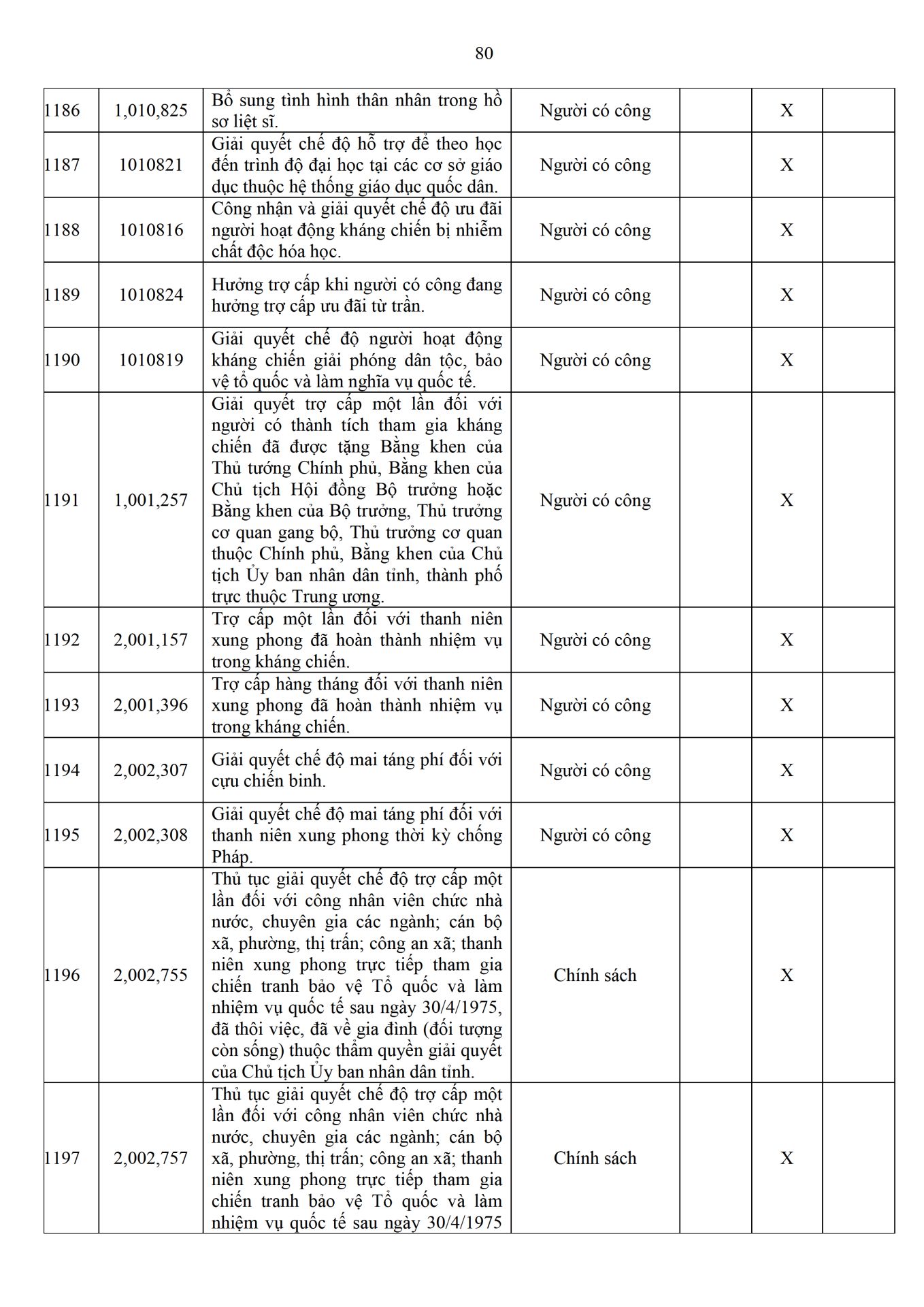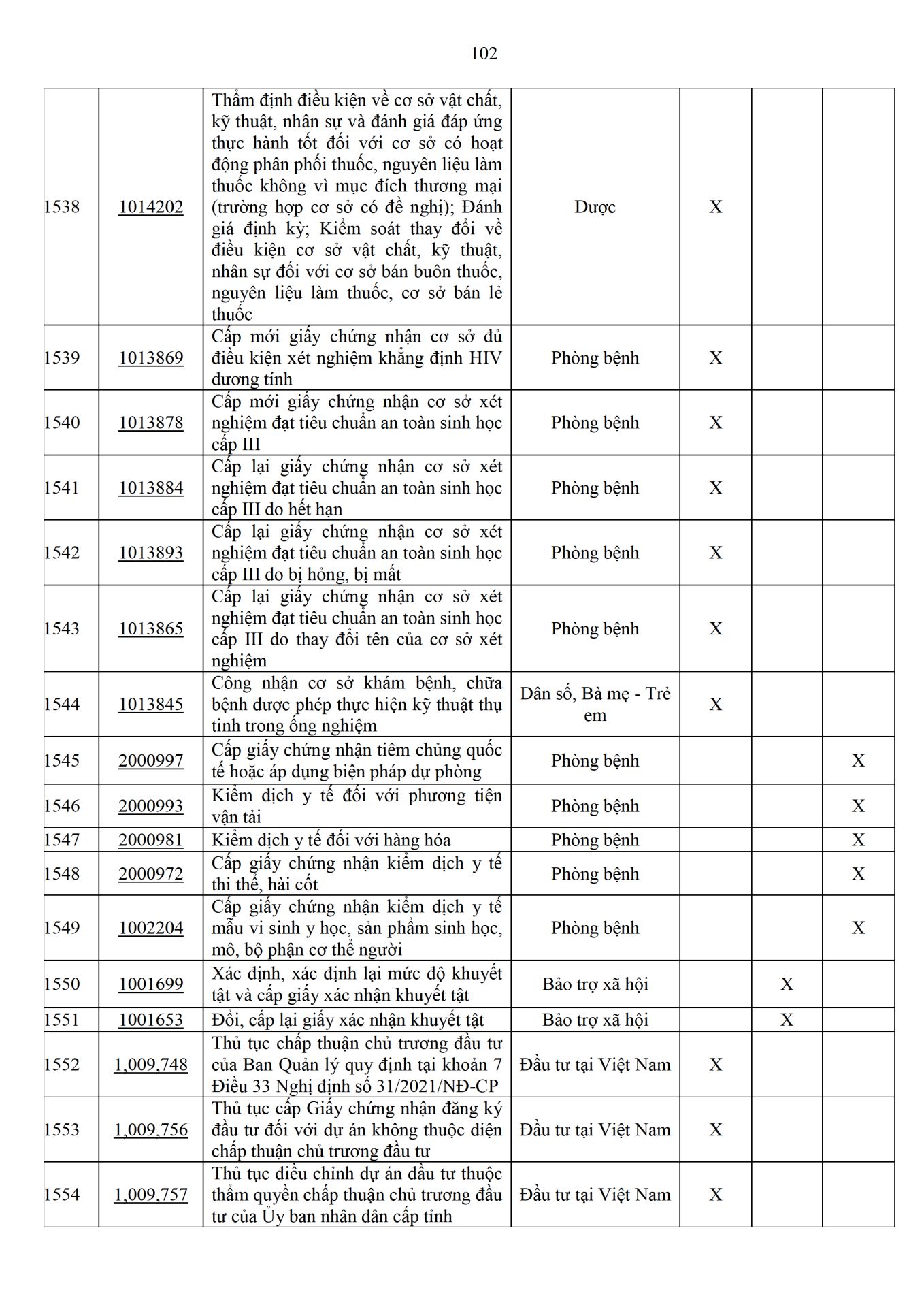 Danh mục dịch vụ công trực tuyến toàn trình tại cấp tỉnh, cấp xã từ trang 59 đến 117