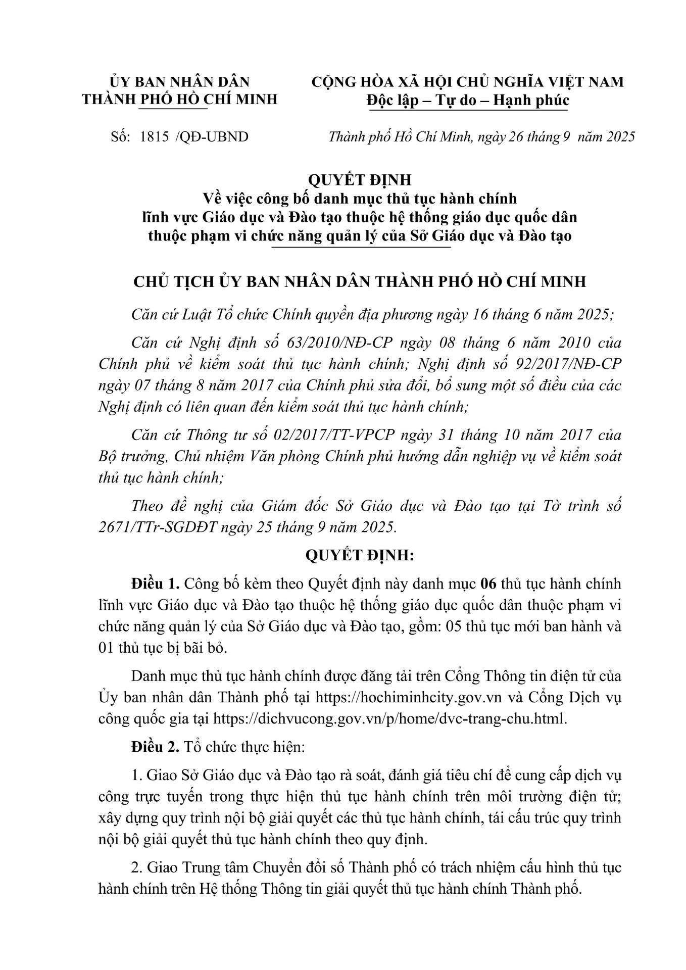 Công bố danh mục TTHC lĩnh vực giáo dục vàđào tạo