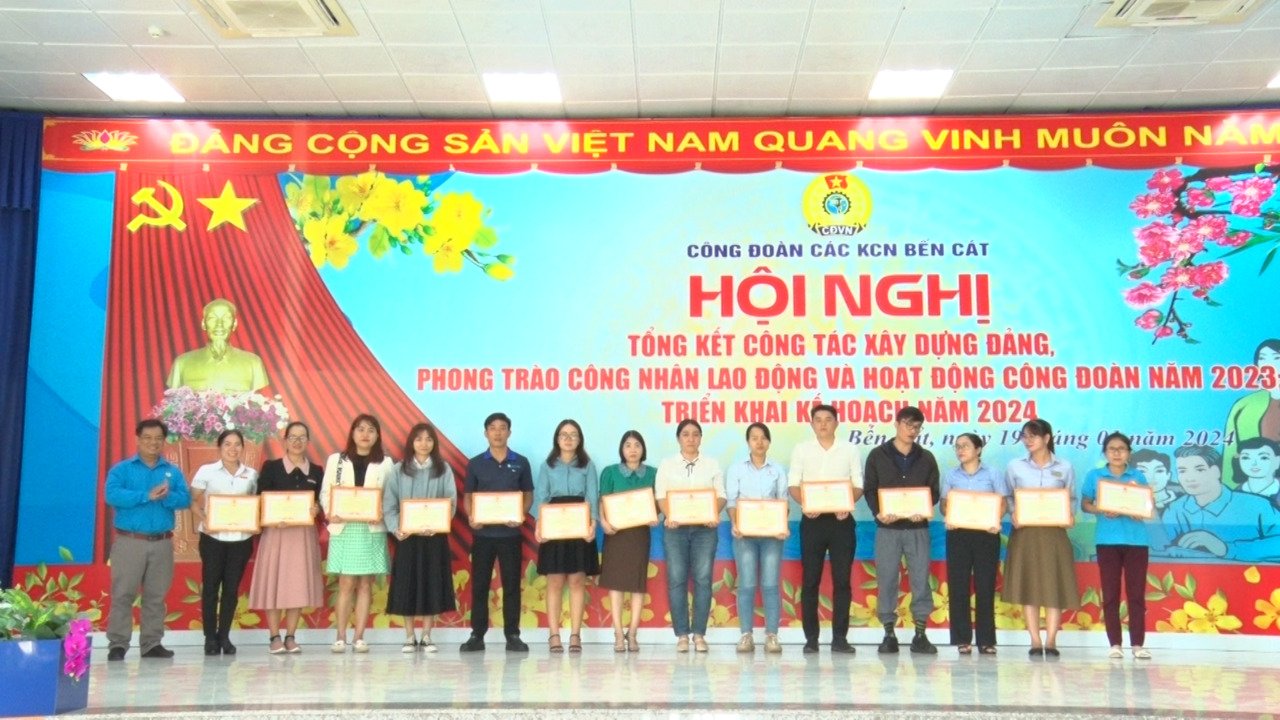 Dịp này, Công đoàn các KCN Bến Cát đã khen thưởng cho 136 công đoàn cơ sở có thành tích xuất sắc trong phong trào công nhân và hoạt động Công đoàn năm 2023.