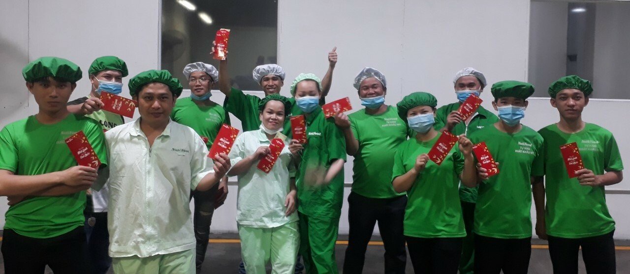 Công ty TNHH MoToMotion Việt Nam và Công ty Cổ phần thực phẩm dinh dưỡng Nutifood lì xì cho công nhân lao động