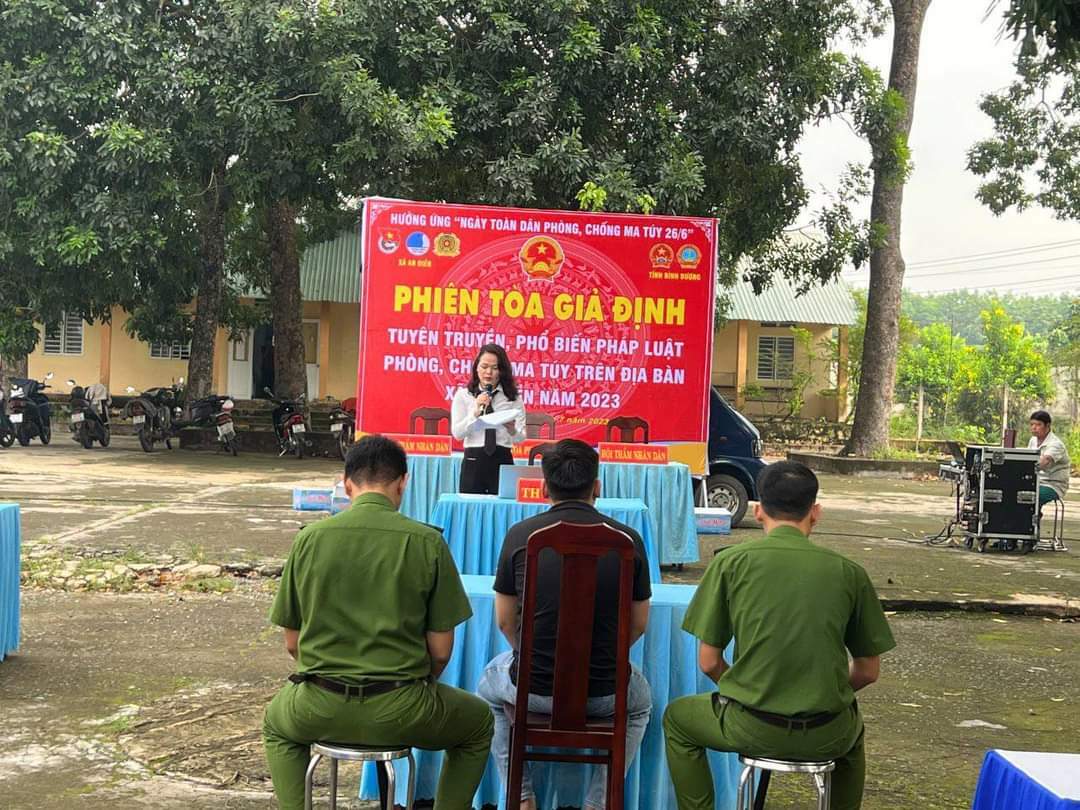 Nhằm đa dạng hóa hình thức tuyên truyền, phổ biến pháp luật phòng, chống ma túy, nâng cao nhận thức pháp luật cho đoàn viên, thanh niên, ngày 01/7, Đoàn thanh niên xã An Điền phối hợp cùng Chi đoàn Tòa án thị xã Bến Cát, Chi đoàn Tòa án – Viện Kiểm sát Nhân dân – Phòng Cảnh sát thi hành án hình sự và Hỗ trợ tư pháp Công an tỉnh tổ chức phiên tòa giả định tại Trung tâm Văn hóa, thể thao - Học tập cộng đồng xã An Điền.