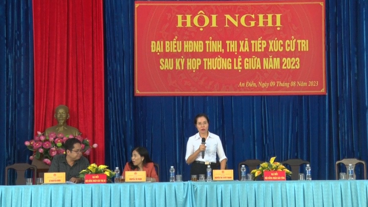 Tại buổi tiếp xúc, cử tri xã An Điền đã có nhiều ý kiến, kiến nghị gửi đến HĐND tỉnh, thị xã để góp phần xây dựng xã An Điền ngày càng phát triển, đặc biệt là khi địa phương chuẩn bị được nâng lên phường. Cụ thể, cần sớm khắc phục tuyến đường ĐT748 vì xuống cấp hư hỏng gây nguy hiểm, mặt đường hẹp, đường thoát nước 02 bên bị lấp, nước không thoát được gây xói mòn; Đề nghị tăng tốc độ cho phép tối đa đối với xe ôtô trên tuyến quốc lộ 13 và tuyến Mỹ Phước – Tân Vạn; mở rộng thêm đối tượng được cấp thẻ bảo hiểm y tế thuộc hội viên Hội Cựu chiến binh; Đề nghị ngành chức năng giám sát, kiểm tra xử lý kịp thời duy tu bảo dưỡng và nạo vét sông Thị Tính, đồng thời đầu tư làm đường ven sông Thị Tính; xem xét, đôn đốc việc cấp quyền sử dụng đất đối với khu dân cư Megacity, ấp Kiến Điền, xã An Điền, vấn đề ô nhiễm môi trường…