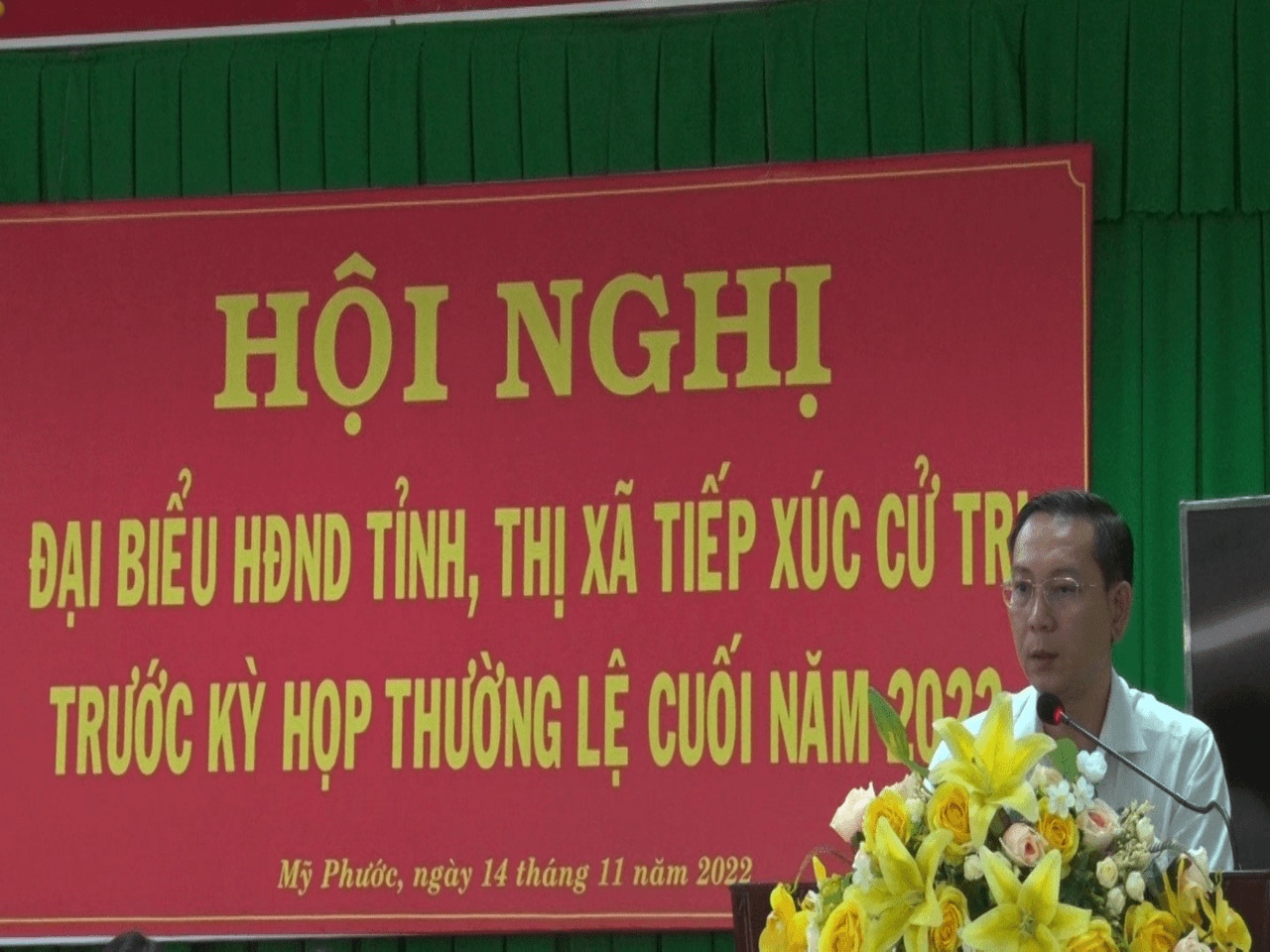 Dịp này, các cử tri phường Mỹ Phước cũng kiến nghị một số vấn đề như: ô nhiễm môi trường do công ty xả thải; cần đẩy nhanh tiến độ thi công đường 30/4 đoạn từ Tàn Dù đến Cầu Quan, vấn đề giải quyết hồ sơ trực tuyến còn bất cập, thông báo thuế đất phi nông nghiệp không đúng thông tin cá nhân…