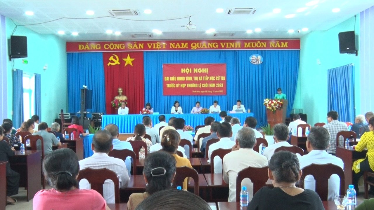 Tại buổi tiếp xúc, các đại biểu HĐND tỉnh, thị xã đã thông tin đến cử tri về kết quả hoạt động của HĐND tỉnh, thị xã năm 2023 và phương hướng nhiệm vụ năm 2024; dự kiến chương trình nội dung kỳ họp thường lệ cuối năm 2023, đồng thời trả lời ý kiến kiến nghị của cử tri tại kỳ tiếp xúc trước. Theo đó, kỳ họp thường lệ cuối năm HĐND tỉnh dự kiến diễn ra trong 02 ngày 07 và 08/12/2023 và kỳ họp thường lệ cuối năm HĐND thị xã dự kiến diễn ra vào giữa tháng 12/2023.
