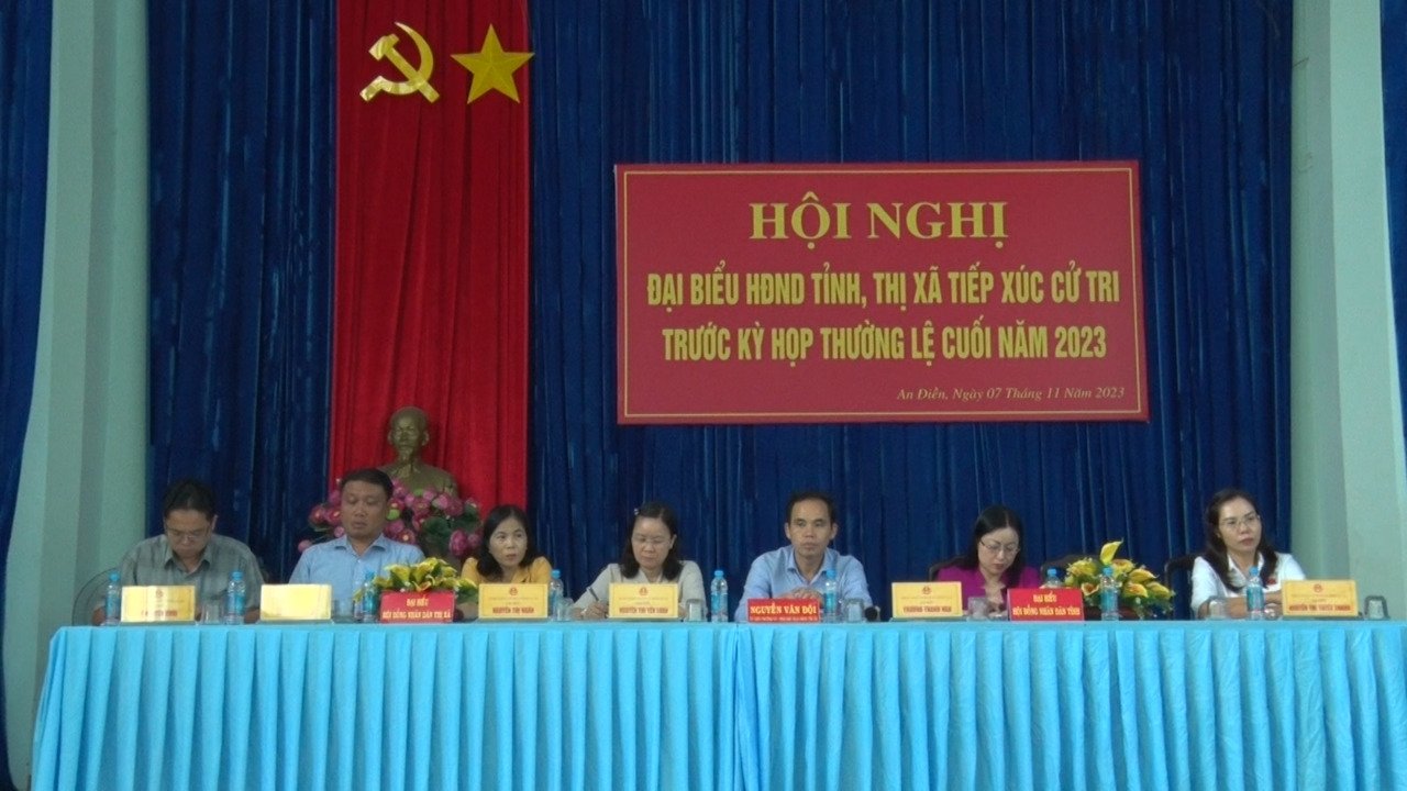 Sau khi nghe HĐND các cấp báo cáo về chương trình, các hoạt động của thường trực HĐND tỉnh, thị xã Bến Cát trong 10 tháng năm 2023 và trả lời các ý kiến, kiến nghị của cử tri theo luật định, cử tri xã An Điền kiến nghị nhiều vấn đề liên quan đến đất đai, nhất là việc chia tách sổ, cấp giấy chứng nhận quyền sử dụng đất khu tái định cư; tình trạng thiếu vật tư y tế kéo dài tại bệnh viện đa khoa tỉnh, vấn đề vệ sinh môi trường trong khu dân cư Rạch Bắp; hơn 40% tuyến đường tại địa phương chưa được bê tông hoặc nhựa nóng gây khó khăn cho việc đi lại của người dân cũng như sự phát triển của địa phương…