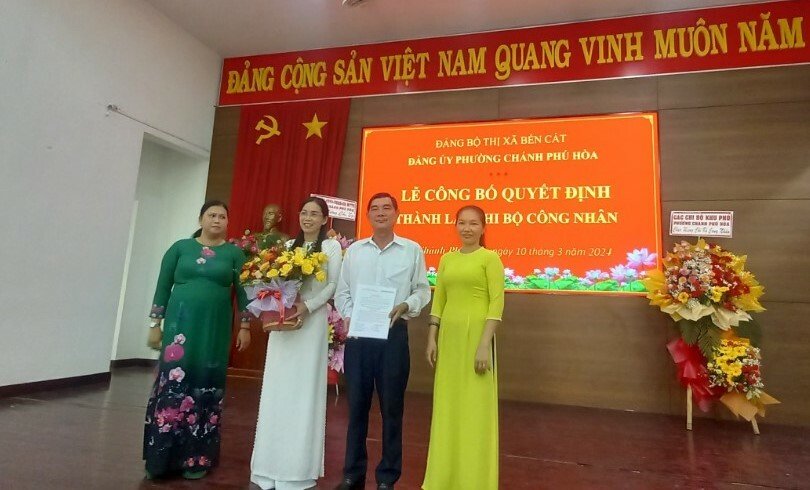 Đảng ủy phường Chánh Phú Hòa thành lập chi bộ công nhân