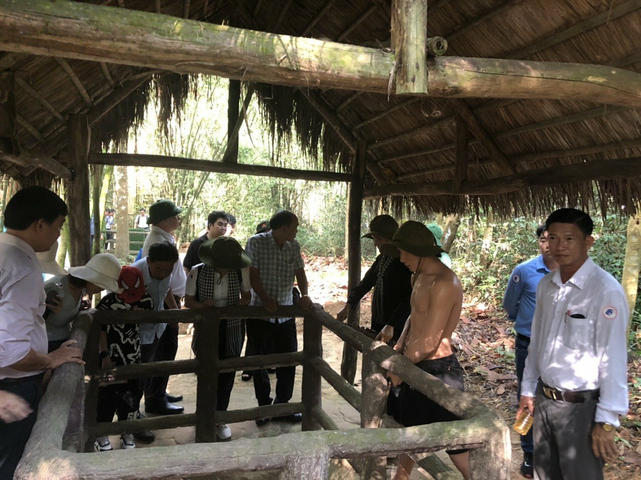 Đoàn cũng đã được nghe giới thiệu về quá trình hình thành địa đạo Củ Chi và sự chiến đấu anh dũng của người dân vùng Tam giác sắt (Trảng Bàng, tỉnh Tây Ninh - Bến Cát, tỉnh Bình Dương - huyện Củ Chi, thành phố Hồ Chí Minh), trong đó đặc biệt là người dân và các chiến sỹ cách mạng ở địa đạo Củ Chi trong thời kỳ kháng chiến chống Mỹ.