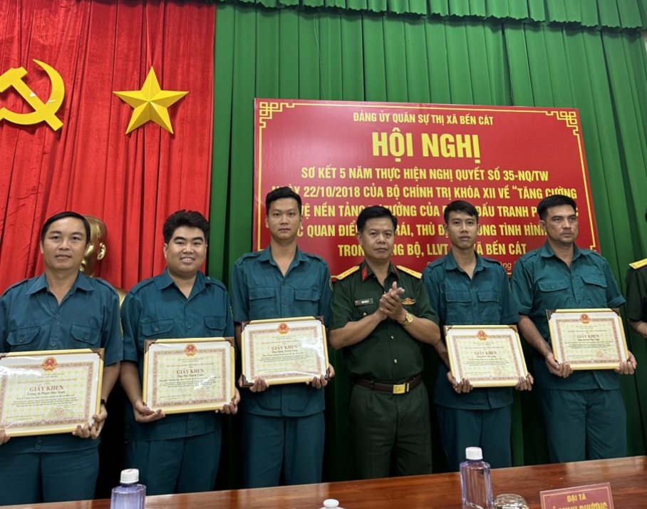 Trong thời gian qua, thực hiện Nghị quyết 35 diễn ra trong tình hình thế giới, khu vực có nhiều biến động, phức tạp, cán bộ, đảng viên LLVT thị xã đã thực hiện tốt công tác tuyên truyền, giáo dục chính trị tư tưởng, nâng cao nhận thức chính trị, ý thức cảnh giác cho cán bộ, đảng viên và các tầng lớp nhân dân trước những âm mưu, thủ đoạn chống phá của các thế lực thù địch, nhất là khi có những vụ việc, vấn đề có tác động nhiều chiều trong dư luận. Cụ thể, trong thời gian qua, Đảng ủy Quân sự đã tập trung xây dựng môi trường văn hóa tốt, đẹp, lành mạnh ở đơn vị; tích cực, chủ động viết bài gửi báo, truyền hình Quân khu, Báo, Đài phát thanh – Truyền hình tỉnh, chương trình Quốc phòng Việt Nam về công tác đấu tranh phòng, chống âm mưu, hoạt động “diễn biến hòa bình” trên lĩnh vực tư tưởng, văn hóa. Bên cạnh đó, xây dựng trang, nhóm facebook “Tự hào Bến Cát, Dân quân tự vệ” đăng gần 3.000 bài viết; tham mưu gỡ bỏ 18 tài khoản cá nhân giả mạo tham gia vào nhóm; báo xấu 68 đường link tuyên truyền thông tin giả mạo, xấu độc; chia sẻ hơn 1.500 đường link tuyên truyền về các hoạt động của Đảng, Nhà nước, quân đội và đơn vị…
