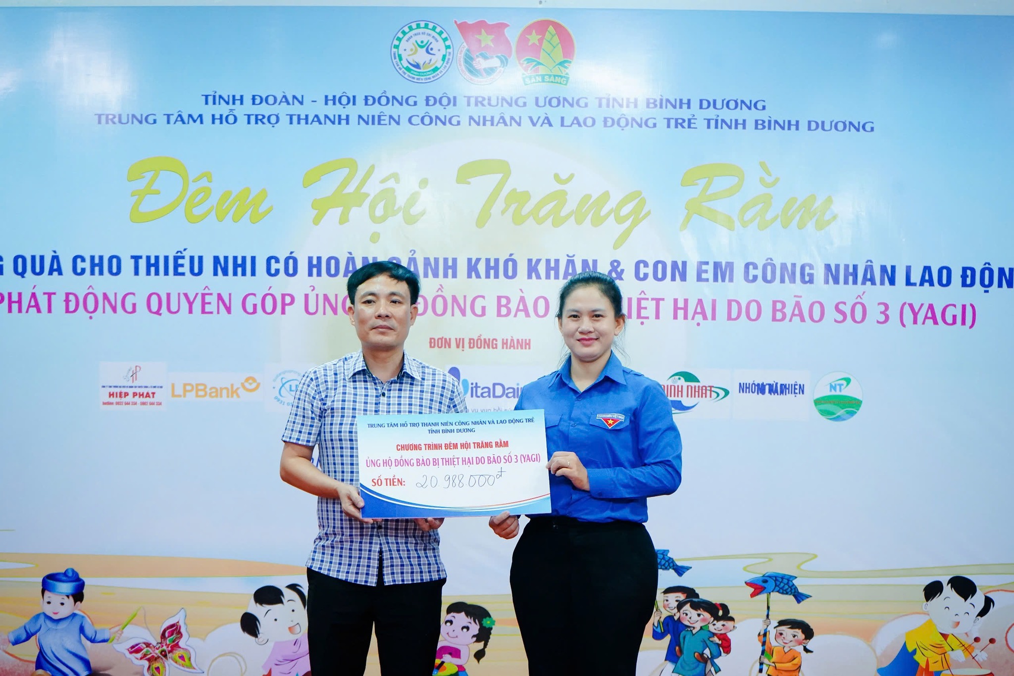 Cũng tại đêm hội, lãnh đạo Trung tâm phát động ủng hộ người dân và thiếu nhi miền Bắc bị ảnh hưởng của bão số 3.