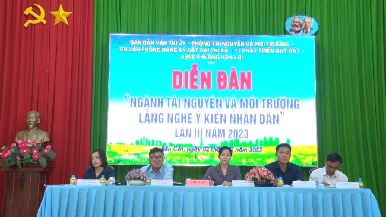 Cũng tại diễn đàn, nhiều người dân đã có ý kiến về quy định khung giờ lấy rác thải trong các khu dân cư để người dân thuận tiện trong việc bỏ rác thải sinh hoạt; cơ quan chức năng cần xử lý nghiêm các trường hợp xả rác thải ra môi trường; Công ty TNHH Giấy Kraft Vina trong khu công nghiệp xả thải mùi hôi thối ảnh hưởng đến sức khỏe người dân; các khu nhà trọ phải xây dựng hệ thống thoát nước, không xả thải tràn lan trên đường; xử lý các điểm thu mua phế liệu trong khu dân cư gây ô nhiễm môi trường; thả rong gia súc trong khu dân cư gây ô nhiễm môi trường, mất mỹ quan đô thị; quy trình, thủ tục chuyển đổi mục đích sử đất, tách thửa đất cho con còn gặp nhiều khó khăn; cần tạo điều kiện cho người dân chuyển đổi mục đích sử dụng đất và giấy phép xây dựng để người dân “an cư lạc nghiệp”…