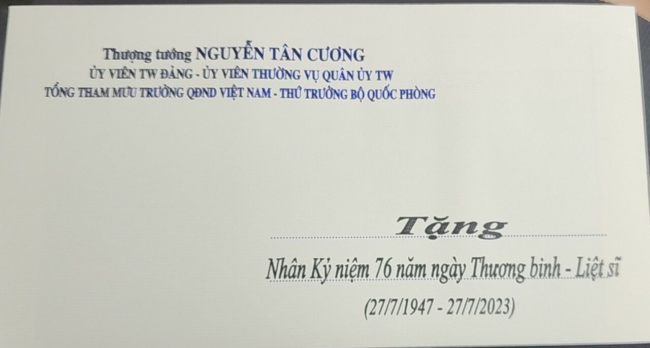 Cũng trong dịp này, Thượng tướng Nguyễn Tân Cương - Ủy viên Trung ương Đảng, Ủy viên Thường vụ Quân ủy Trung ương, Tổng Tham mưu trưởng Quân đội Nhân dân Việt Nam, Thứ trưởng Bộ Quốc phòng đã gửi quà tặng các mẹ VNAH và 10 phần tặng cho gia đình chính sách xã An Tây.