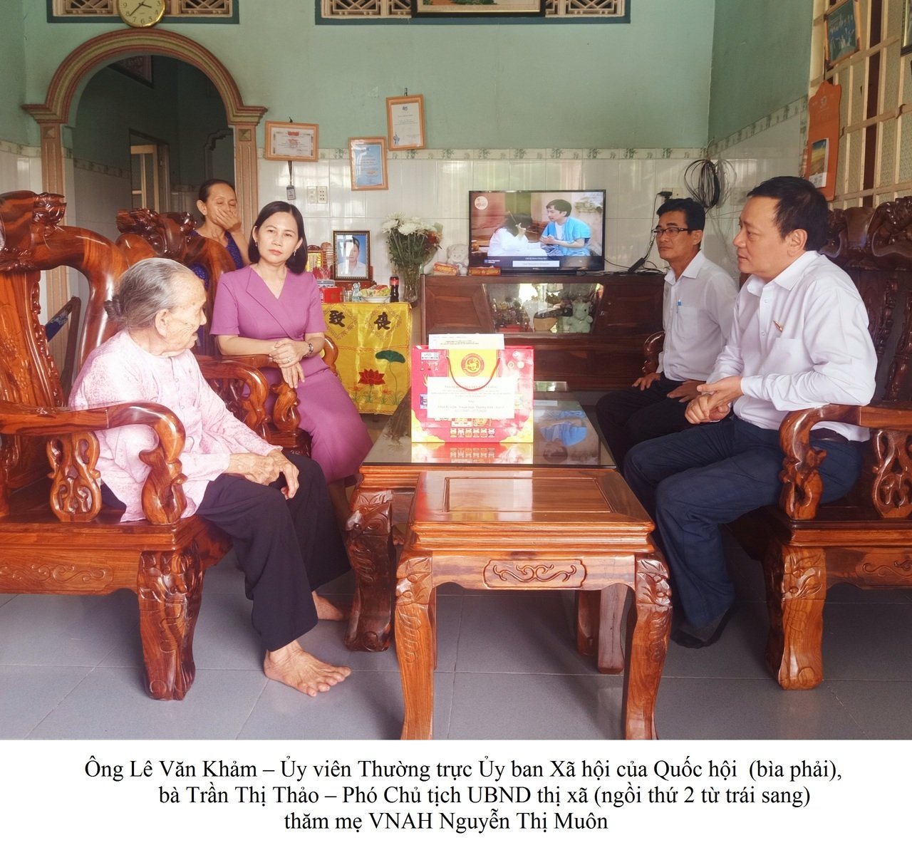 Theo đó, Đoàn đã đến thăm và tặng quà mẹ Việt Nam anh hùng Nguyễn Thị Muôn, mẹ Cao Thị Trưa (phường Thới Hòa); mẹ Ung Thị Nừng, mẹ Đặng Thị Út (xã An Điền); mẹ Phạm Thị Vấn, mẹ Trần Thị Suối (xã An Tây) và mẹ Trương Thị Nhành (phường Tân Định).