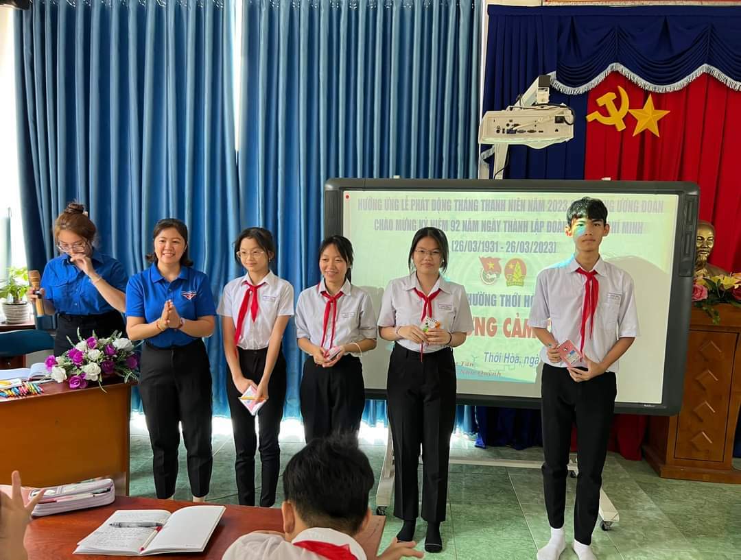 Nằm trong chuỗi các hoạt động Tháng Thanh niên năm 2023, kỷ niệm 92 năm ngày thành lập Đoàn TNCS Hồ Chí Minh (26/3/1931 - 26/3/2023), ngày 26/02, Ban chấp Đoàn thanh niên phường Thới Hòa tổ chức lớp bồi dưỡng cảm tình Đoàn năm 2023 cho hơn 100 đội viên ưu tú khối 9 thuộc Liên đội trường THCS Thới Hòa có nguyện vọng đứng vào tổ chức Đoàn thanh niên.