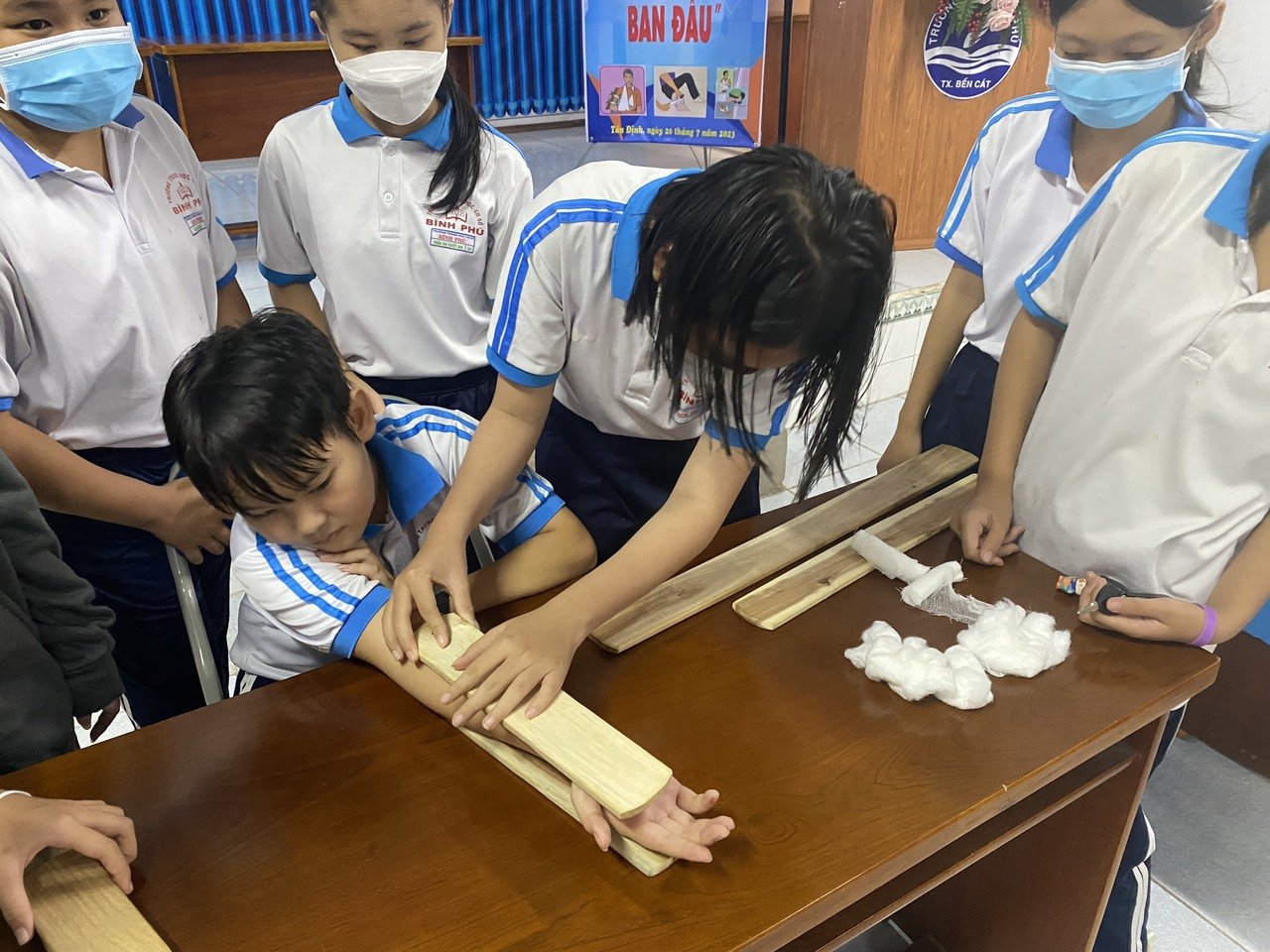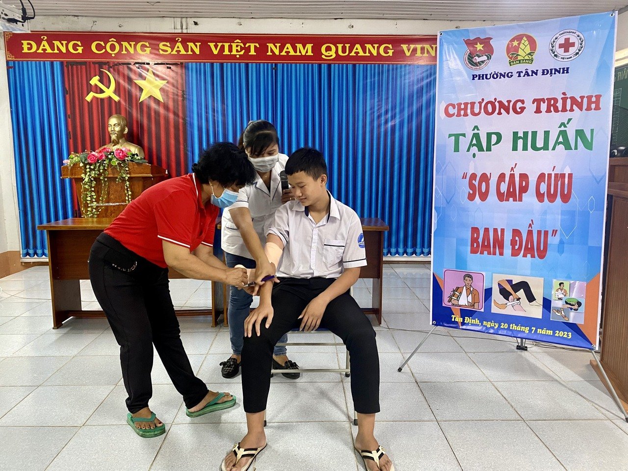 Ngày 20/7, Đoàn thanh niên phường Tân Định, Hội Chữ thập đỏ phường cùng phối hợp tổ chức tập huấn 5 kỹ thuật sơ cấp cứu ban đầu cho học sinh trường THCS Bình Phú.