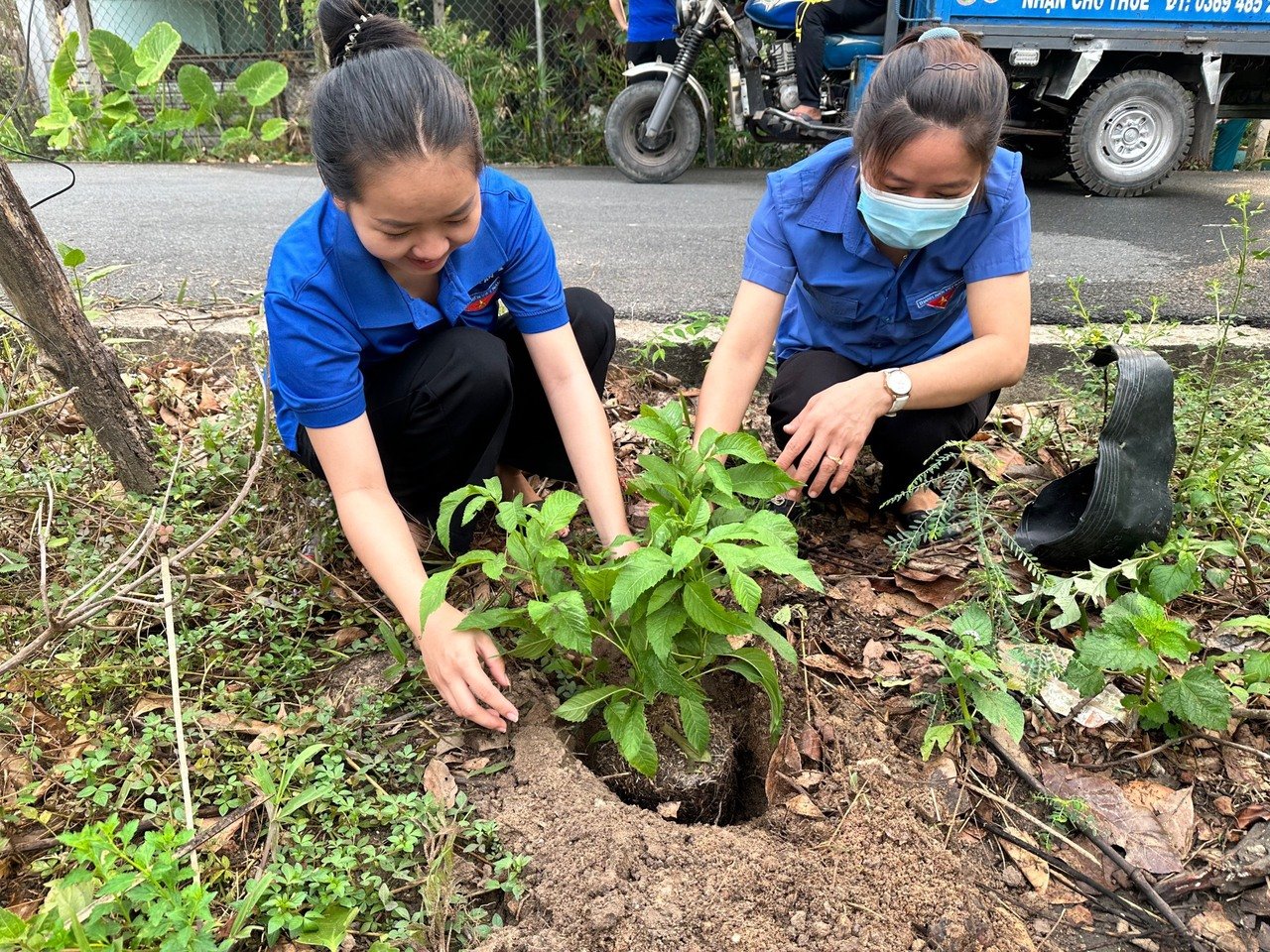 Theo đó, công trình được thực hiện trên đường ĐX76, ấp Phú Thuận, đoàn viên của 02 đơn vị đã trồng 20 cây hoa chuông vàng.