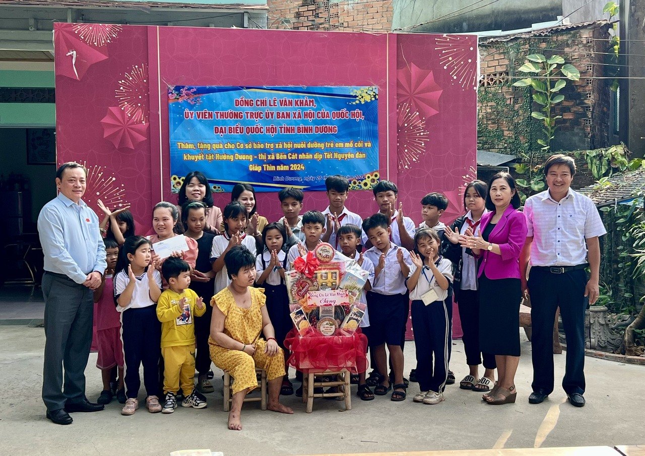 Ngày 26/01, đồng chí Lê Văn Khảm - Ủy viên Thường trực Ủy ban Xã hội của Quốc hội, Đại biểu Quốc hội tỉnh Bình Dương đã đến thăm và tặng quà cho cơ sở Bảo trợ xã hội nuôi dưỡng trẻ em mồ côi và khuyết tật Hướng Dương, thị xã Bến Cát nhân dịp Tết Nguyên đán Giáp Thìn năm 2024. Cùng đi có đồng chí Nguyễn Thị Ngọc Xuân – Phó Trưởng Đoàn chuyên trách Đoàn Đại biểu Quốc hội tỉnh Bình Dương, đồng chí Trần Thị Thảo – Phó Chủ tịch UBND thị xã, đồng chí Lê Nguyễn Thanh Bình – Chủ tịch Liên đoàn Lao động thị xã Bến Cát.