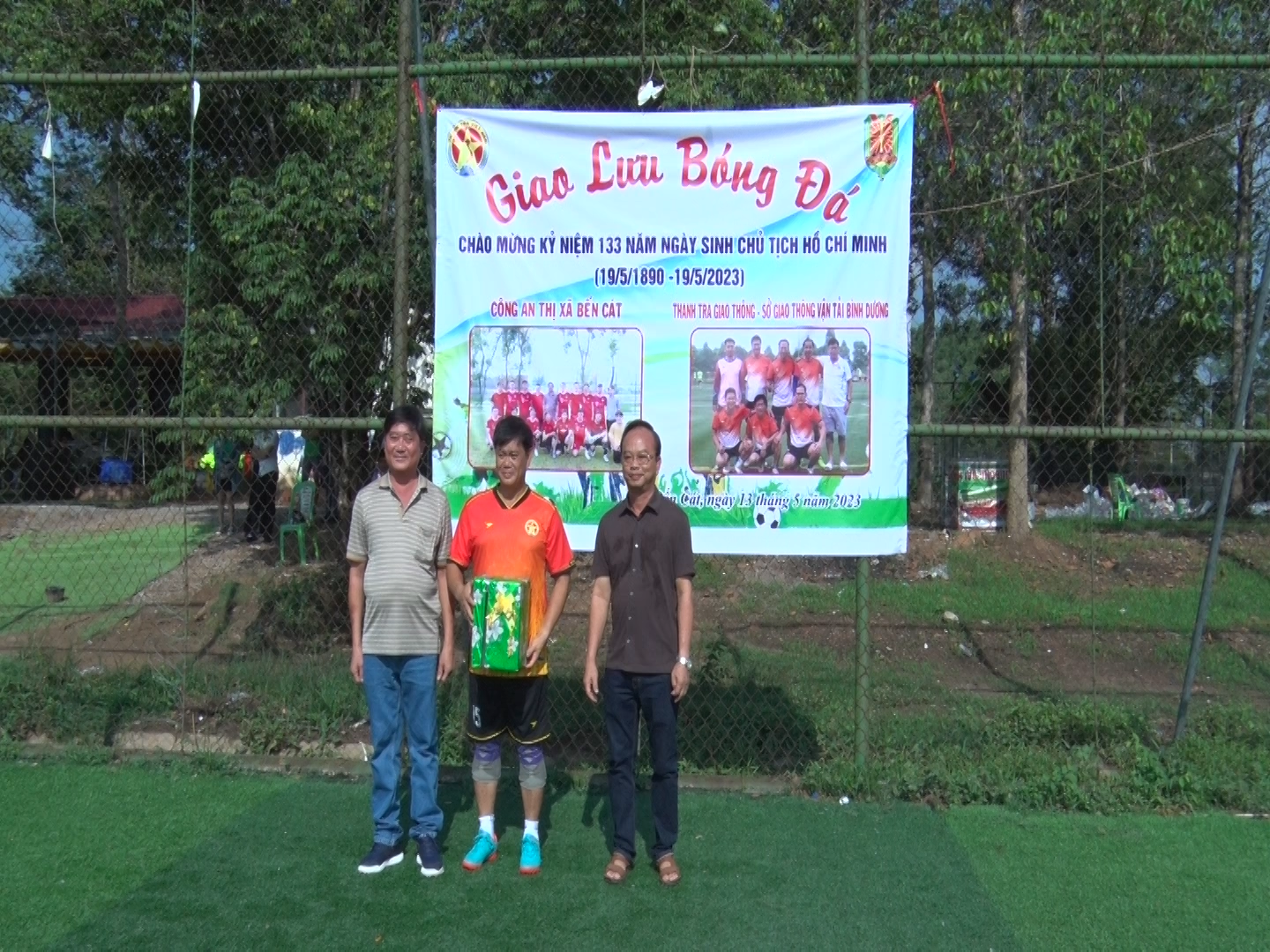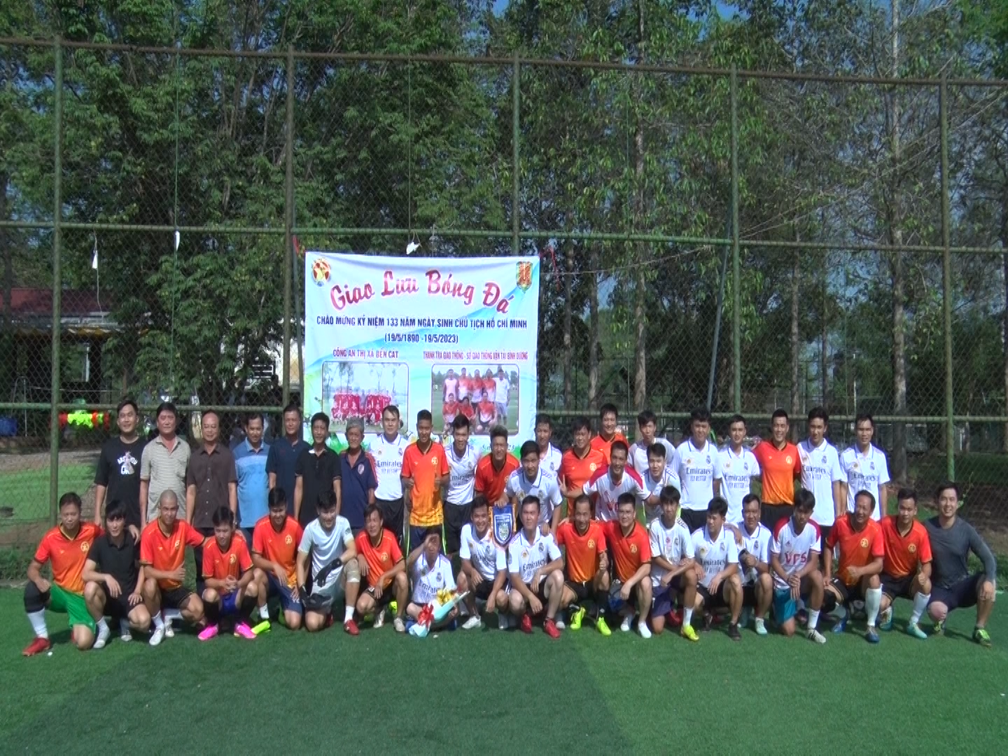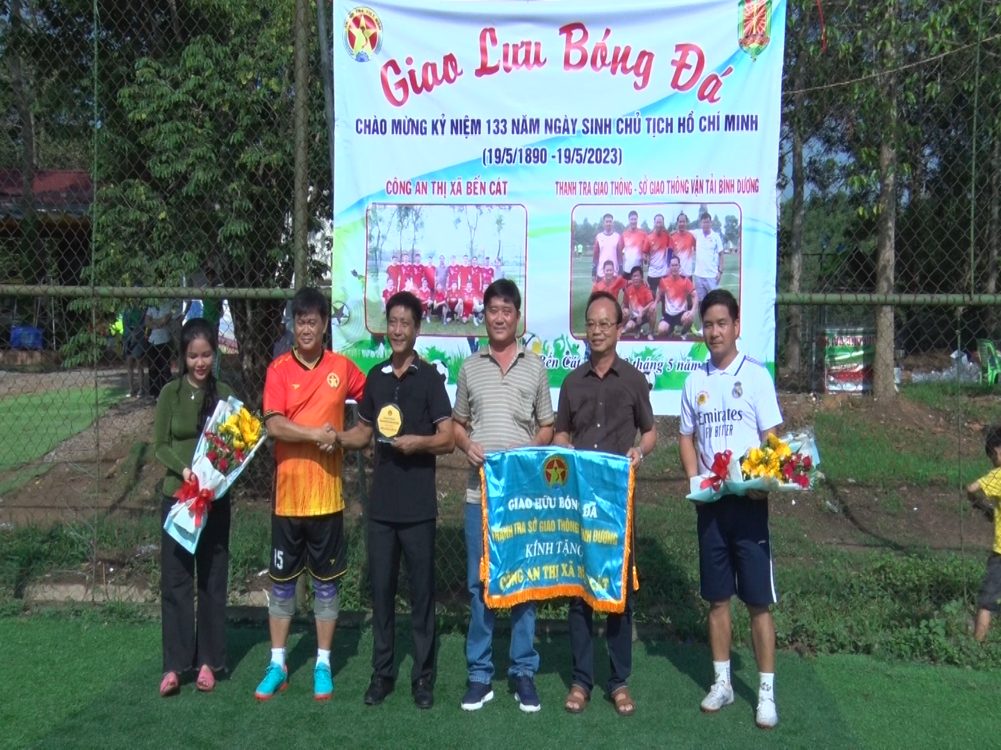 Thiết thực kỷ niệm 133 năm ngày sinh Chủ tịch Hồ Chí Minh (19/5/1890-19/5/2023), ngày 13/5, Công an thị xã Bến Cát giao lưu bóng đá cùng Thanh tra Sở Giao thông vận tải tỉnh. Đến dự có Thượng tá Nguyễn Văn Tâm, Thượng tá Nguyễn Văn Đông – Phó Trưởng Công an thị xã, ông Nguyễn Văn Tư – Chánh Thanh tra Sở Giao thông vận tải tỉnh.