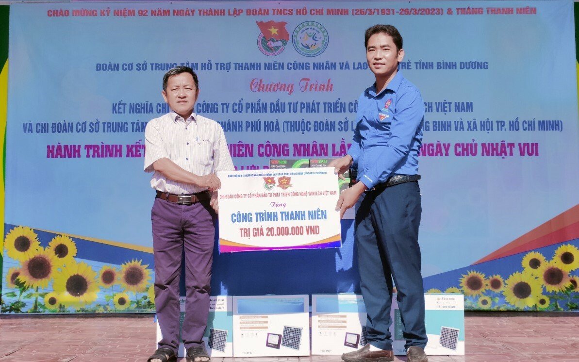 Dịp này, Chi đoàn Công ty Cổ phần đầu tư và Phát triển công nghệ Wintech Việt Nam trao tặng công trình thanh niên trị giá 20 triệu đồng và trao tặng 10 phần quà cho các cô chú, thiếu nhi tại Trung tâm Bảo trợ xã hội Chánh Phú Hòa.