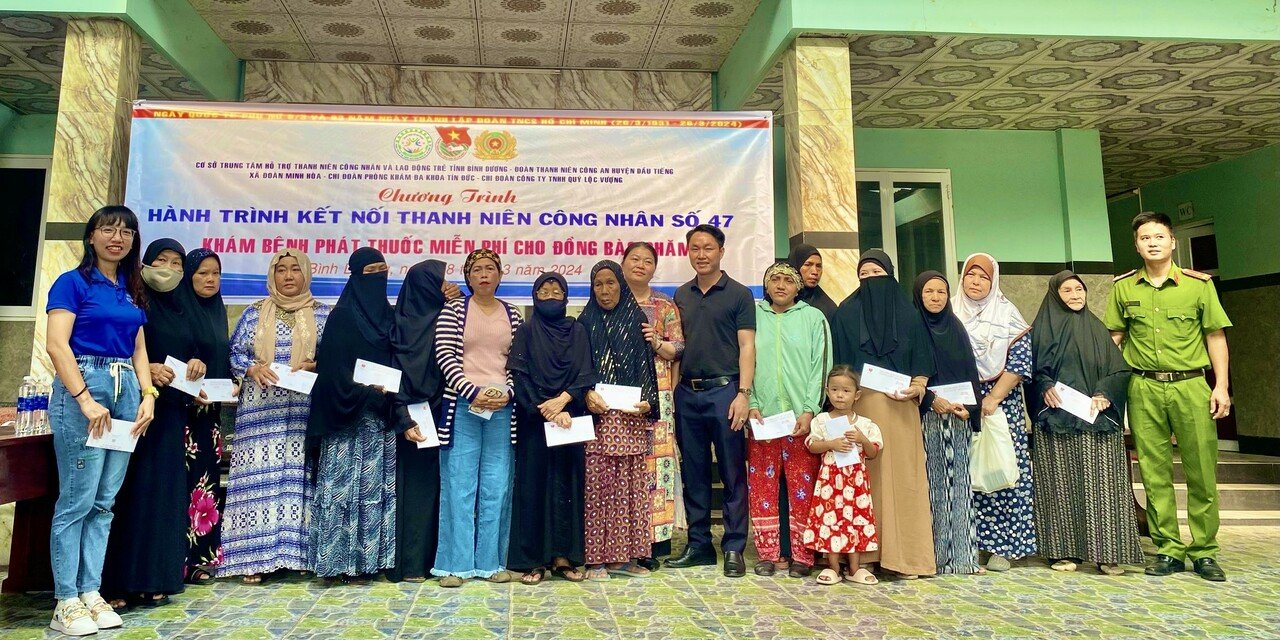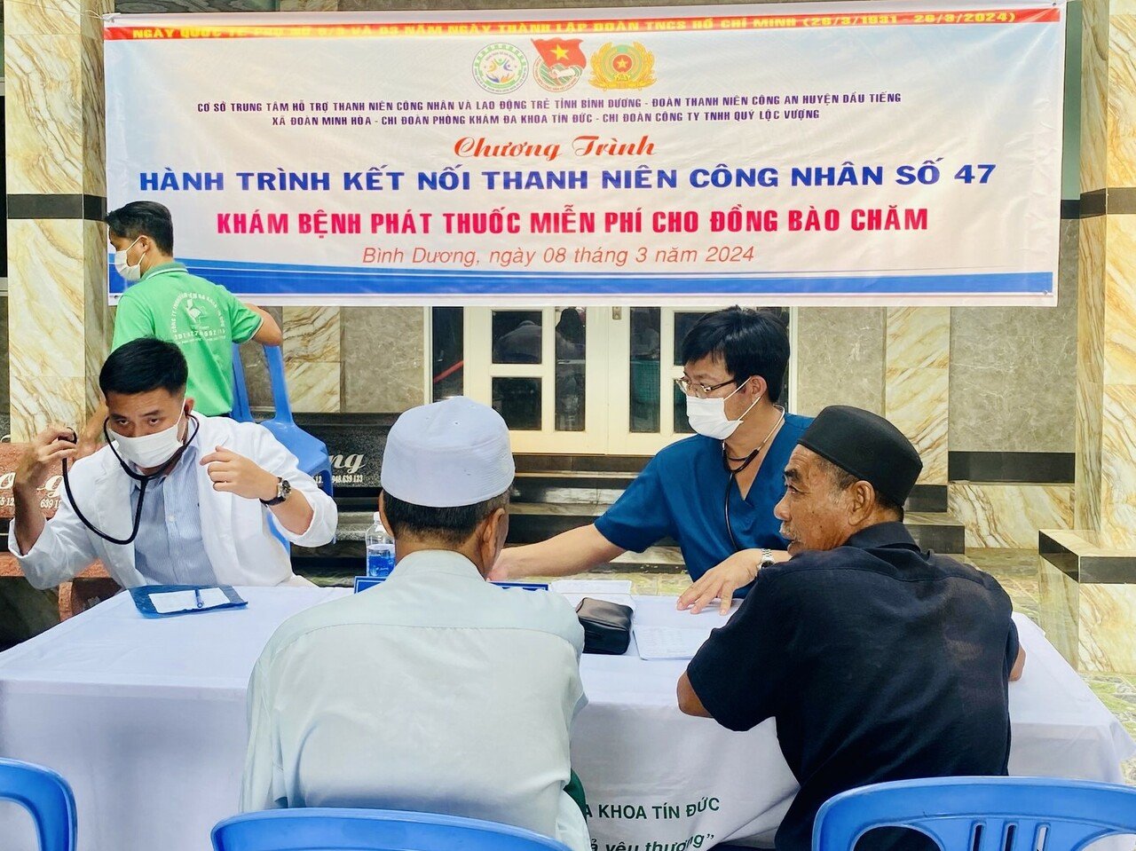 Theo đó, đoàn đã khám bệnh phát thuốc miễn phí cho đồng bào người Chăm với số lượng 100 suất, tổng trị giá 180.000.000 đồng; đồng thời trao tặng 10 phần quà cho các hộ có hoàn cảnh khó khăn trị giá 5 triệu đồng. Qua hoạt động nhằm hỗ trợ và chăm sóc đến đoàn viên, thanh niên công nhân, đặc biệt là thanh niên công nhân và người dân có hoàn cảnh khó khăn có cuộc sống ổn định, có sức khỏe an tâm lao động trên địa bàn tỉnh.