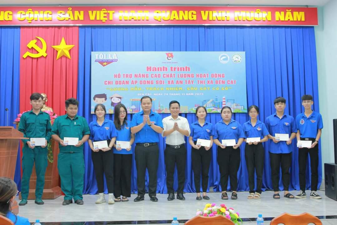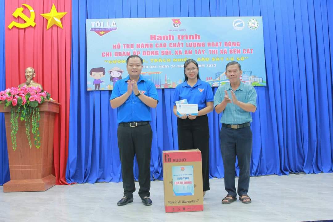 Dịp này, Ban Thường vụ Tỉnh đoàn đã trao tặng chi đoàn ấp Dòng Sỏi 01 loa di động cùng số tiền là 1.000.000 đồng và 01 bộ sách đoàn vụ; Trung tâm Hỗ trợ thanh niên công nhân và lao động trẻ trao tặng 25 Voucher chăm sóc sức khỏe răng miệng, mỗi Voucher trị giá 5 triệu đồng.